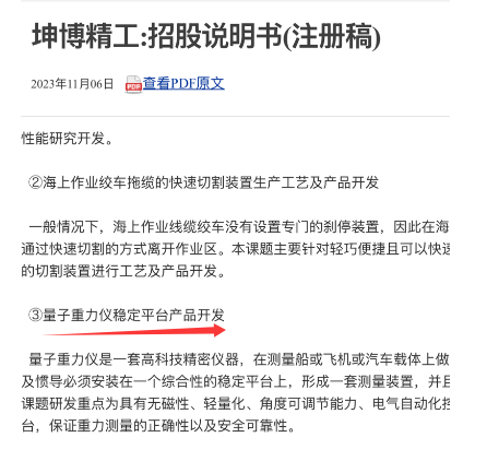 坤博精工招股说明书上确实有开发量子重力仪稳定平台开发,量子计算概念股