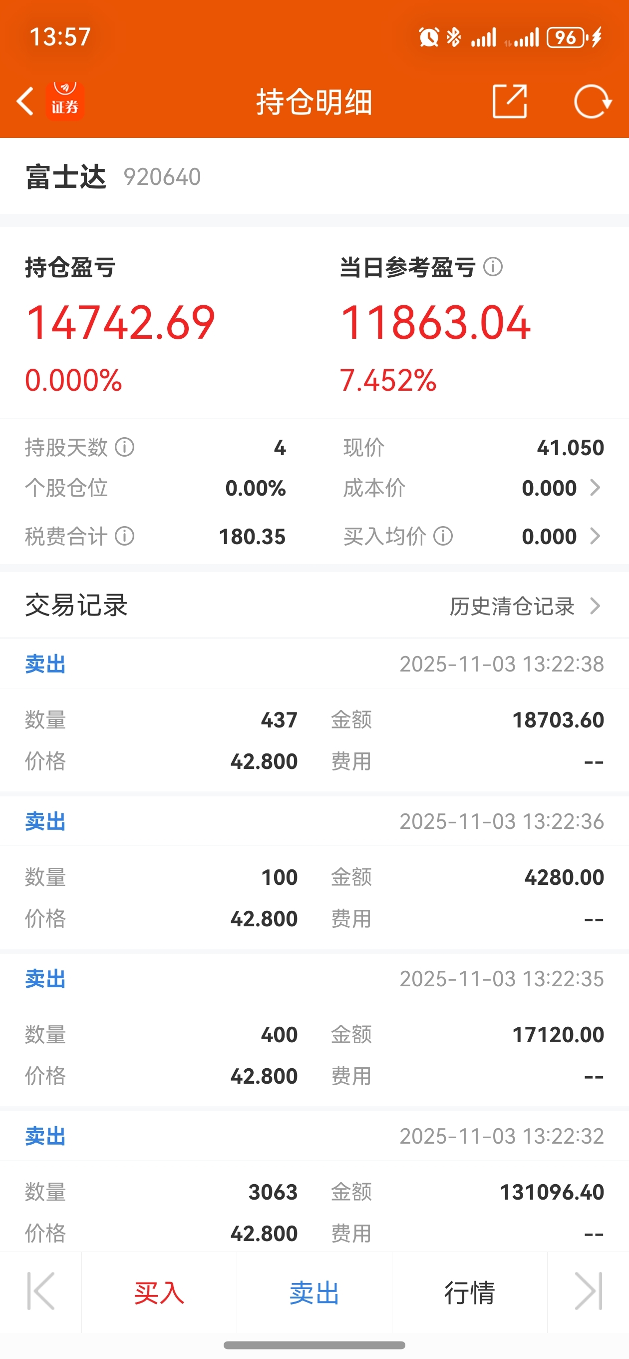 42.8卖了你!小赚1.47万,感谢主力!
