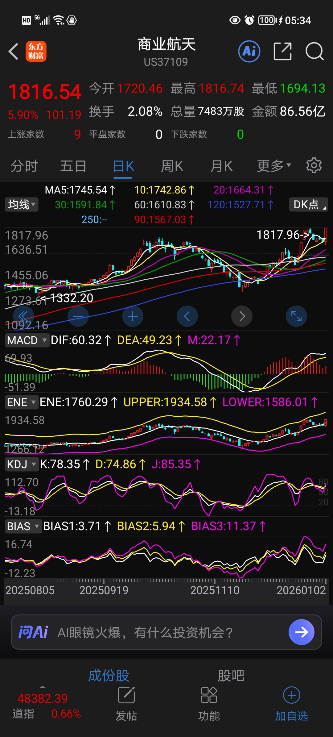 $富士达(SZ920640)$ 美股商业航天概念在2026年开局大涨近6%接近历史新高