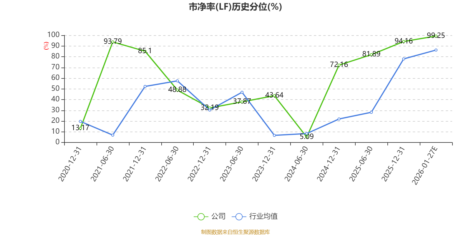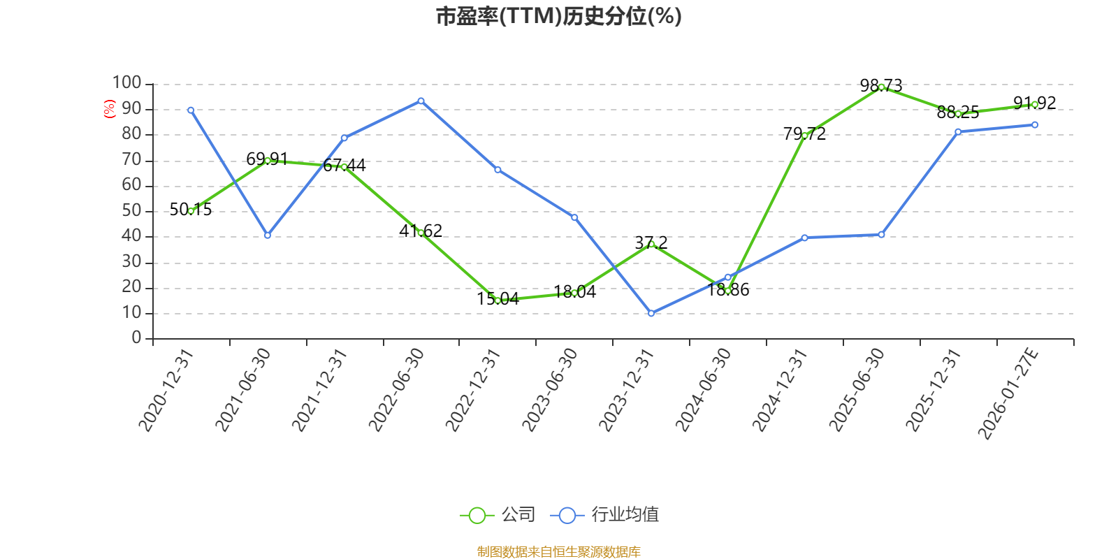 市盈率、市净率为负时,不显示当期分位数,会导致折线图中断。