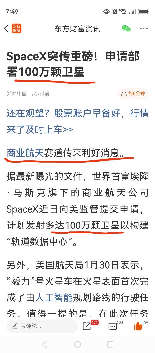 马斯克在社交平台X上转发了关于SpaceX申请发射多达100万颗卫星的报道。