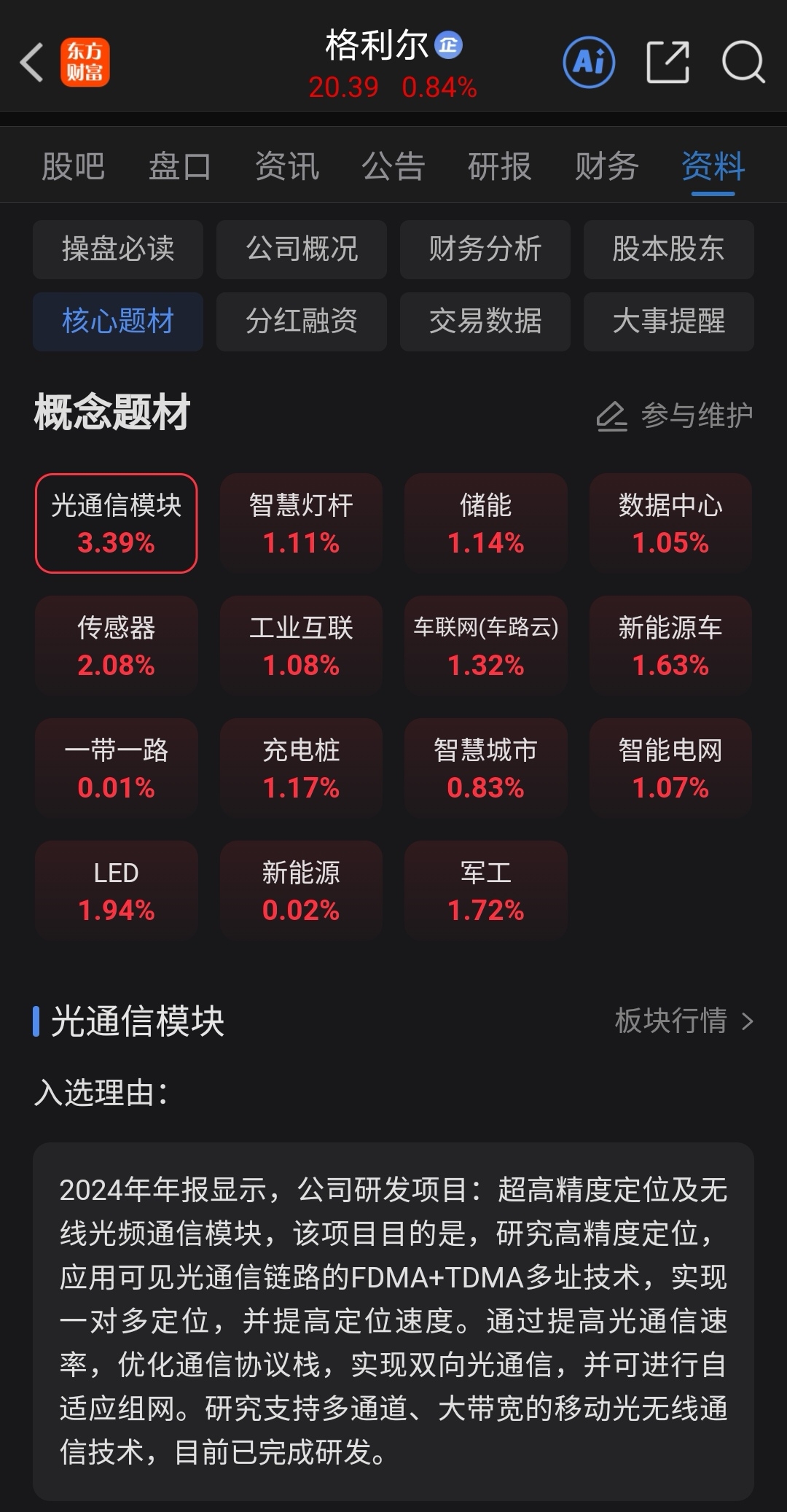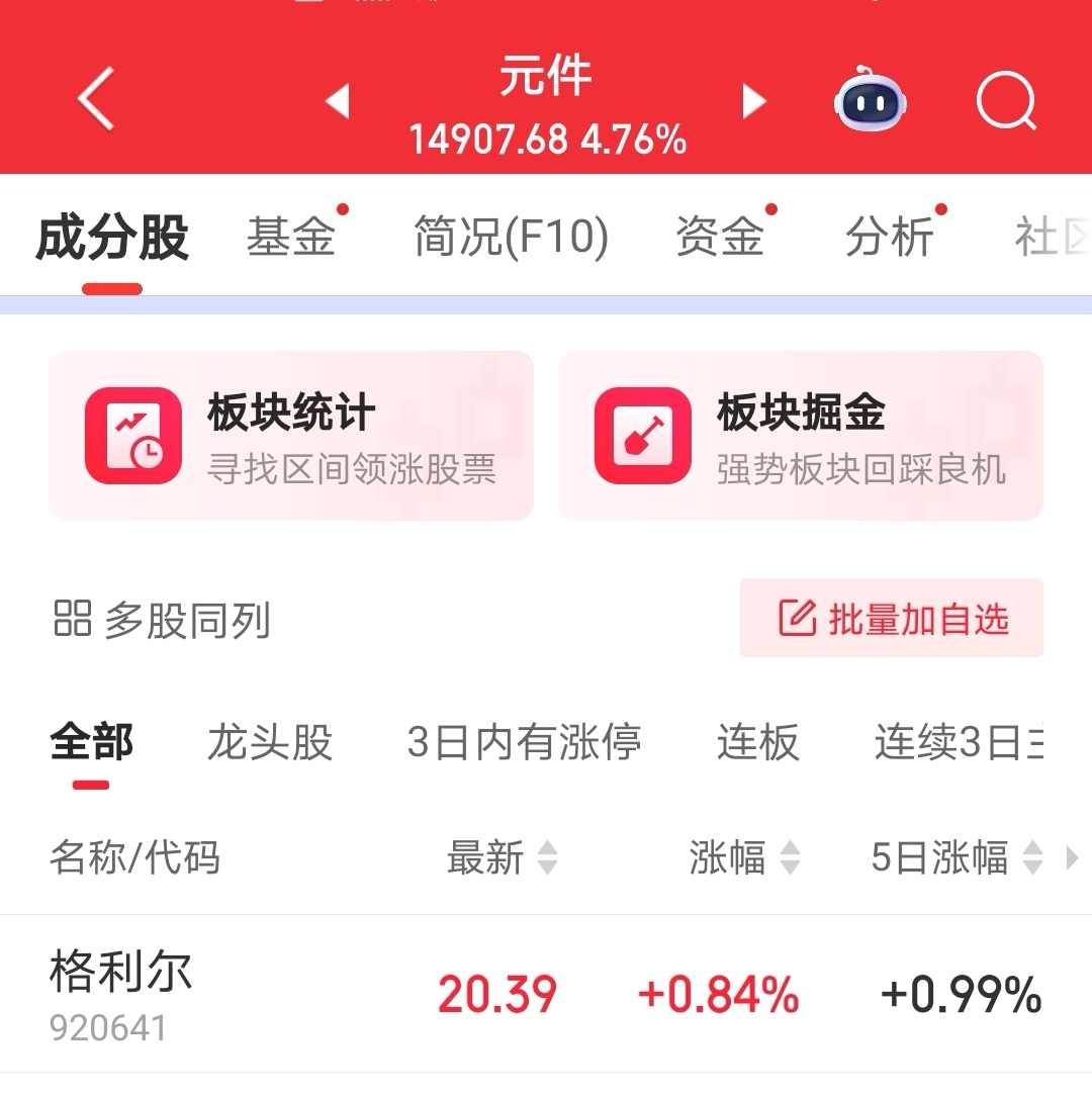 指数大涨,元件板块暴涨近5%,光通信模块板块暴涨近4%,其他涉及几十个热门概念全部大涨,格利尔三天合计大跌8%!里面主力给其他资金做嫁衣,希望继续下跌,让大家抄底