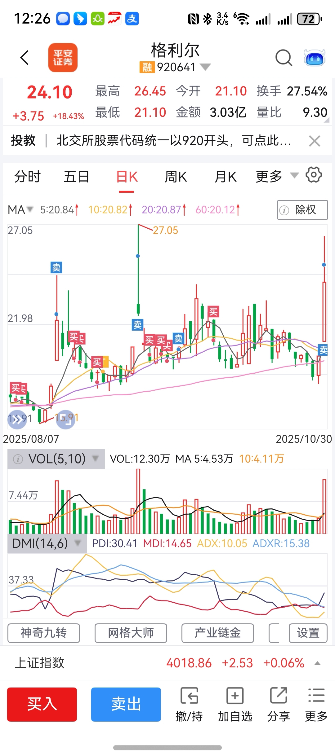 $格利尔(SZ920641)$ 没有一次卖到30