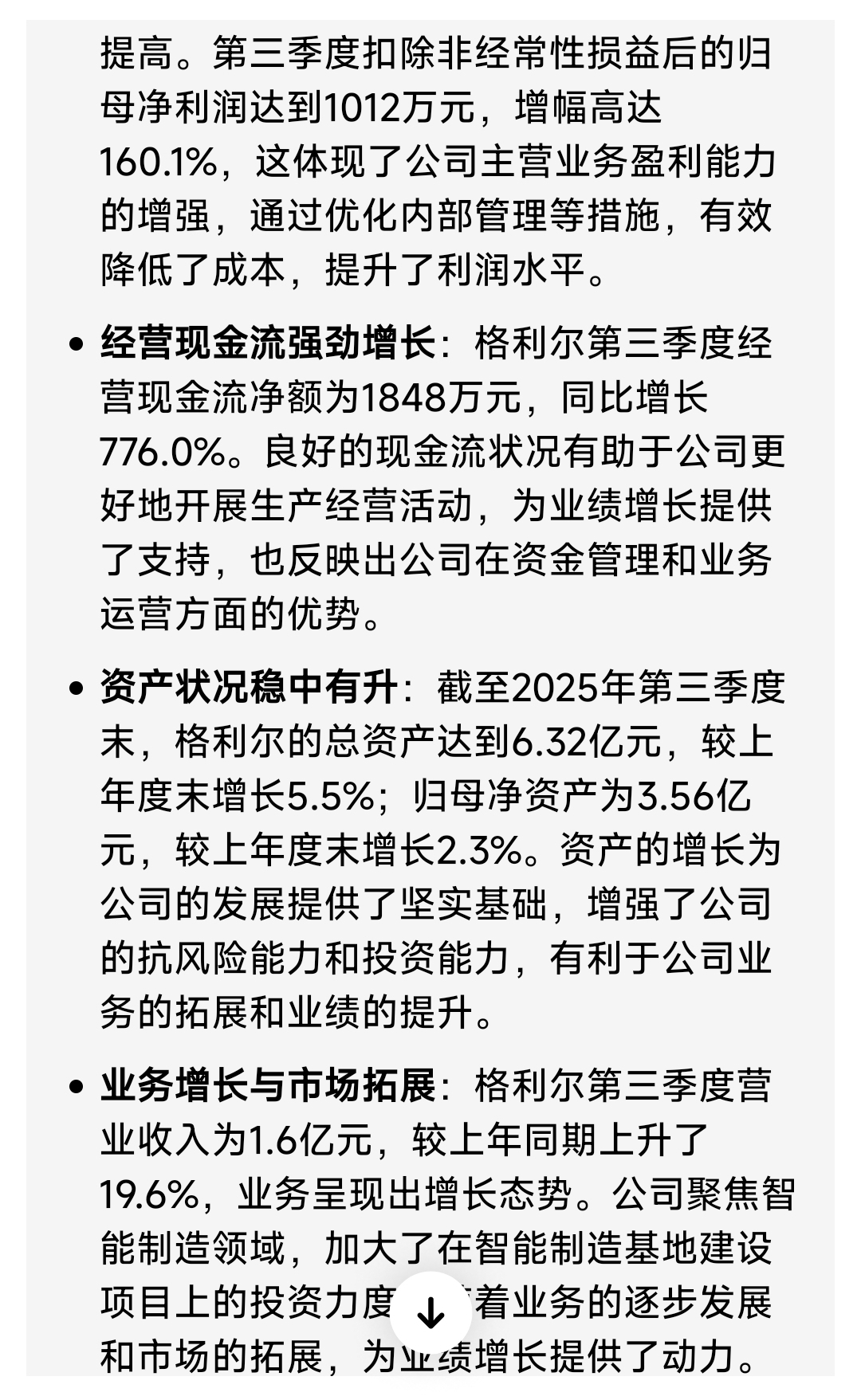 $格利尔(SZ920641)$ 光通信+Ai算力电源+医疗电源+光伏储能+军工+传感器+充电桩+车联网+智能电网+智慧城市+业绩大增+机构买入,题材王,站上短期均线,绿盘买入。三季报净利润1634万元增1271%
