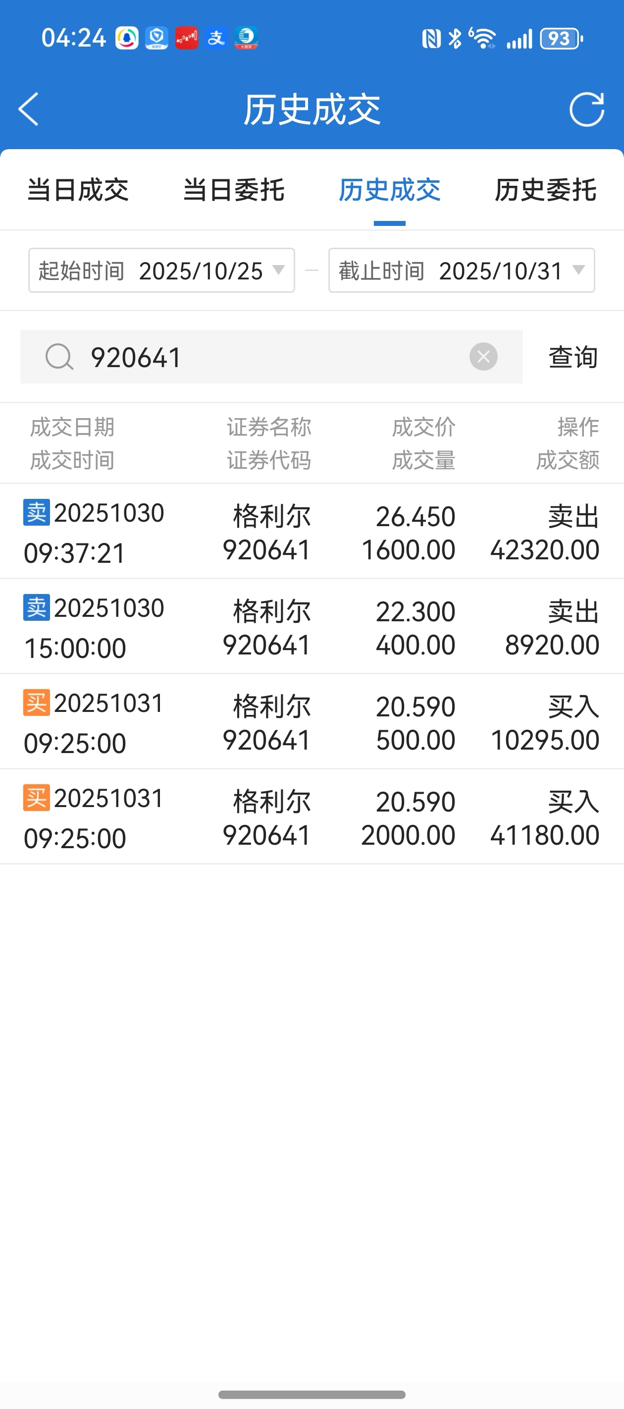 $格利尔(SZ920641)$ 只用一天,卖出的20手就秒变买回的25手