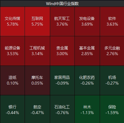 盘面上,相关小红书平台、Kimi、抖音豆包、虚拟人等AI应用概念,以及WEB3.0、网红经济、稀有金属等概念板块涨幅居前;同时文化传媒、互联网、航天军工、发电设备等行业板块出现较大涨幅。与之对比,硅能源、光伏等概念板块,以及保险、林木等行业板块跌幅居前。