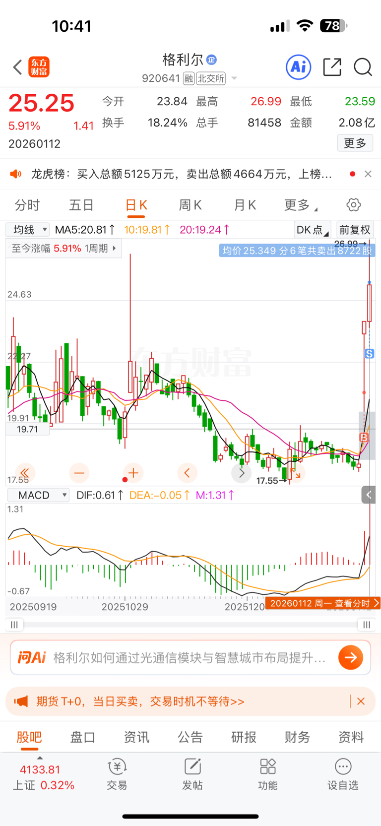 $格利尔(SZ920641)$ 没有卖在高点,当时也吃了20个点