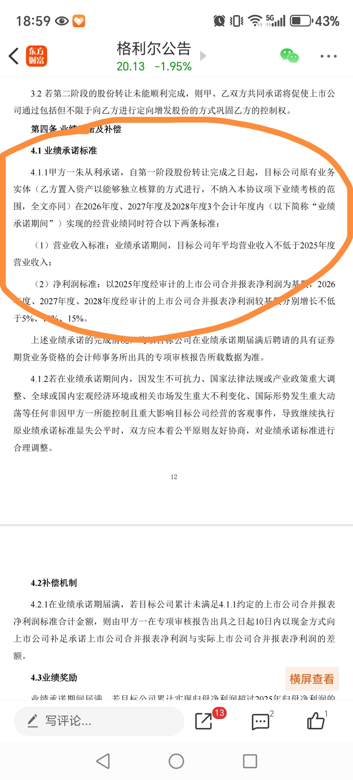 $格利尔(SZ920641)$ 以2025年业绩为基准的业绩承诺