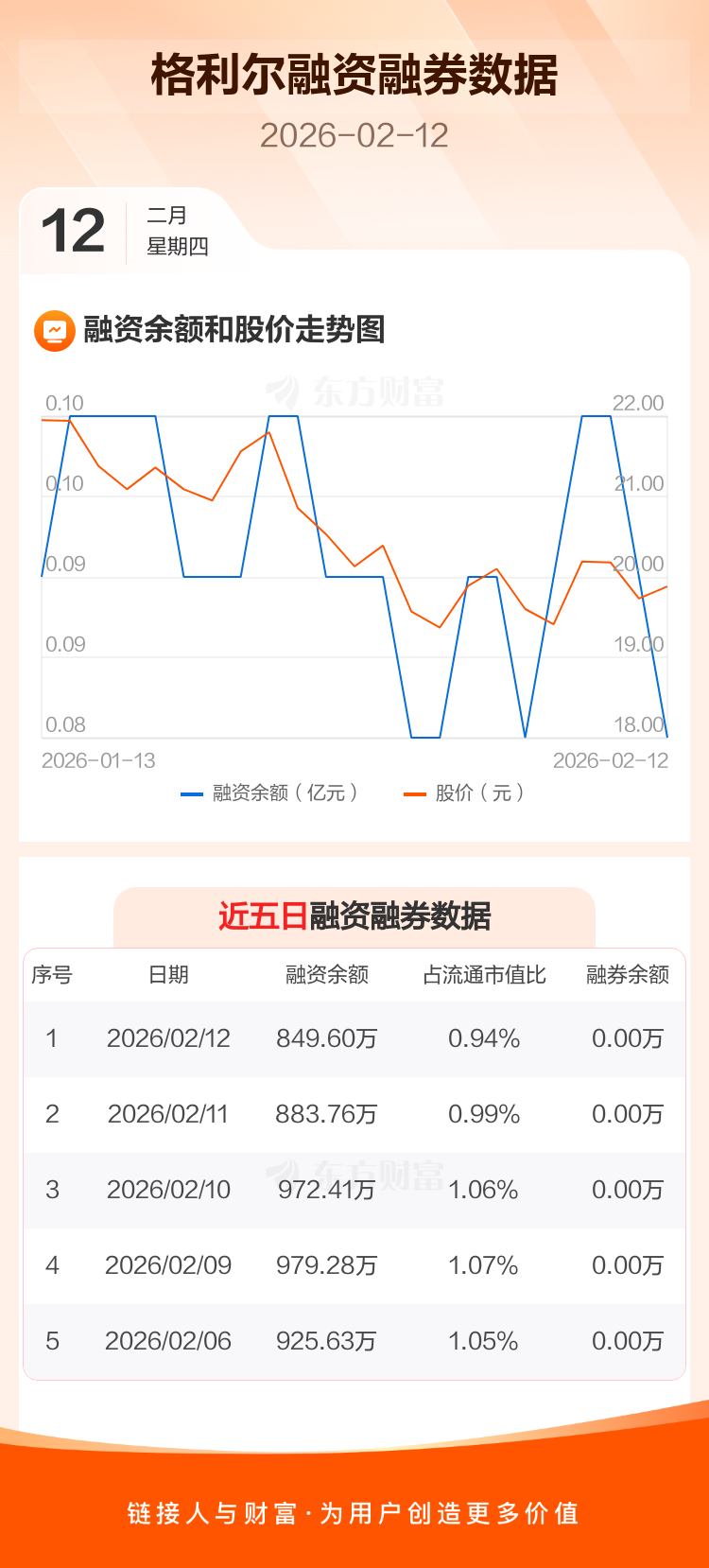 交易所最新数据显示,格利尔于2026年2月12日获融资买入4.54万元,融资偿还38.70万元,当日融资净偿还34.16万元。目前,该股融资余额849.60万,占流通市值比例为0.94%。