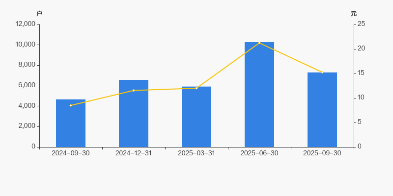 2024年9月30日至今,公司股东户数显著大幅增长,区间涨幅达56.58%。2024年9月30日至2025年9月30日区间股价上涨79.90%。