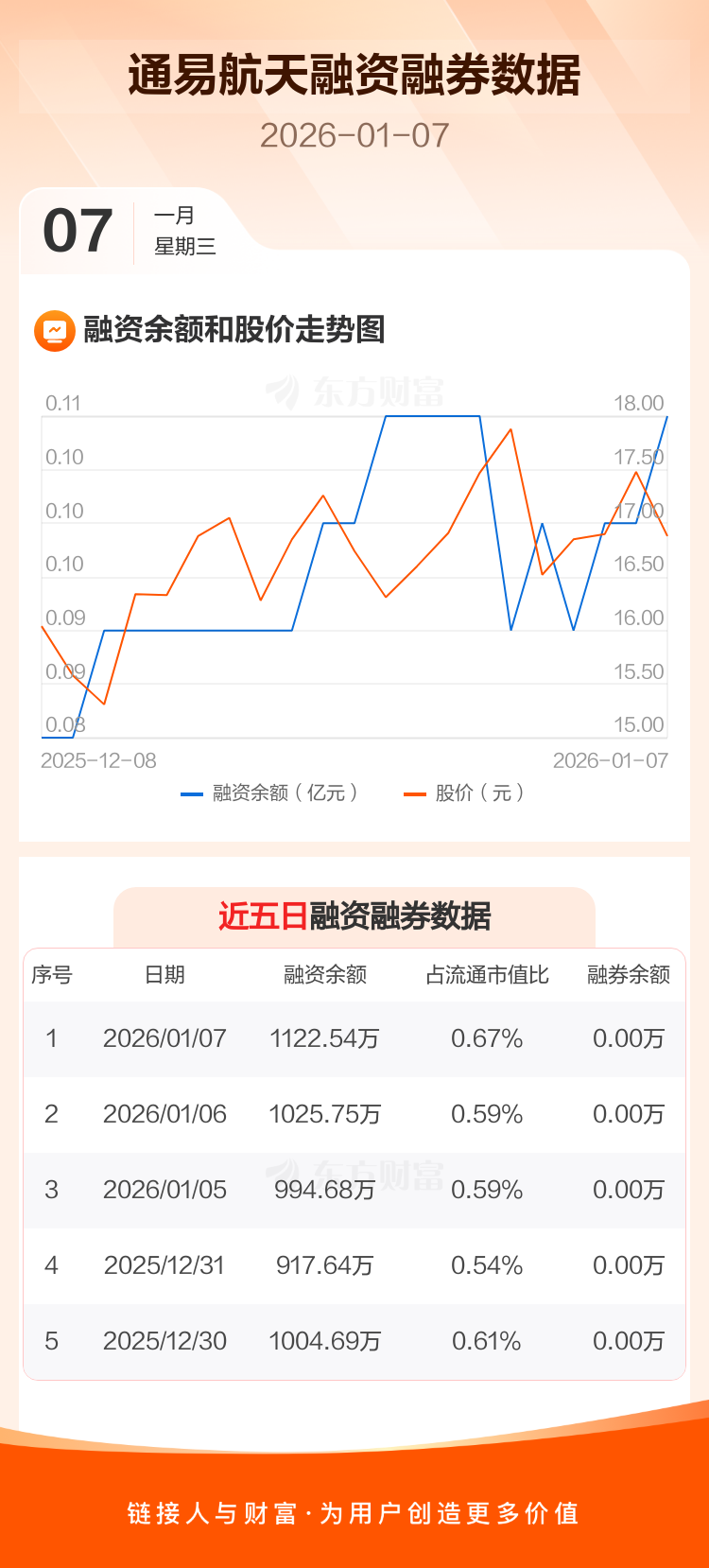 交易所最新数据显示,通易航天于2026年1月7日获融资买入231.14万元,融资偿还134.36万元,当日融资净买入96.78万元。目前,该股融资余额1122.54万,占流通市值比例为0.67%。