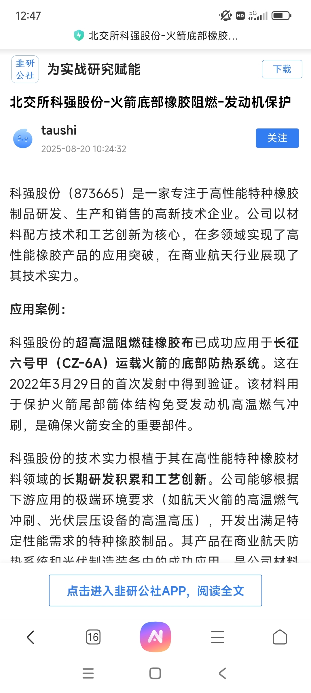 $科强股份(SZ920665)$ 科强生产航天材料。