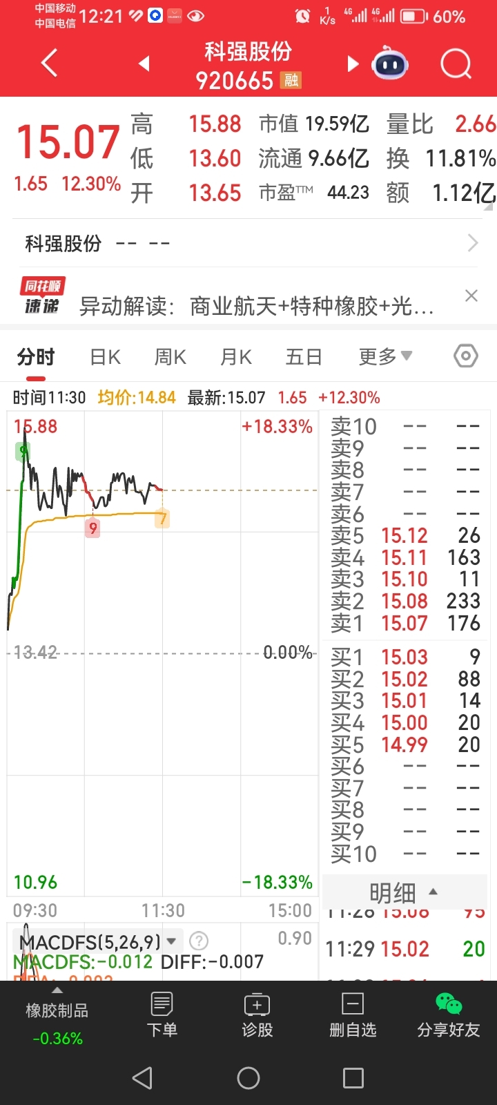 $科强股份(SZ920665)$ $科强股份(920665)$ 收盘不破日均线继续持有,跌破就跑路,等下周二回调到位低位接回来,等待继续反弹。