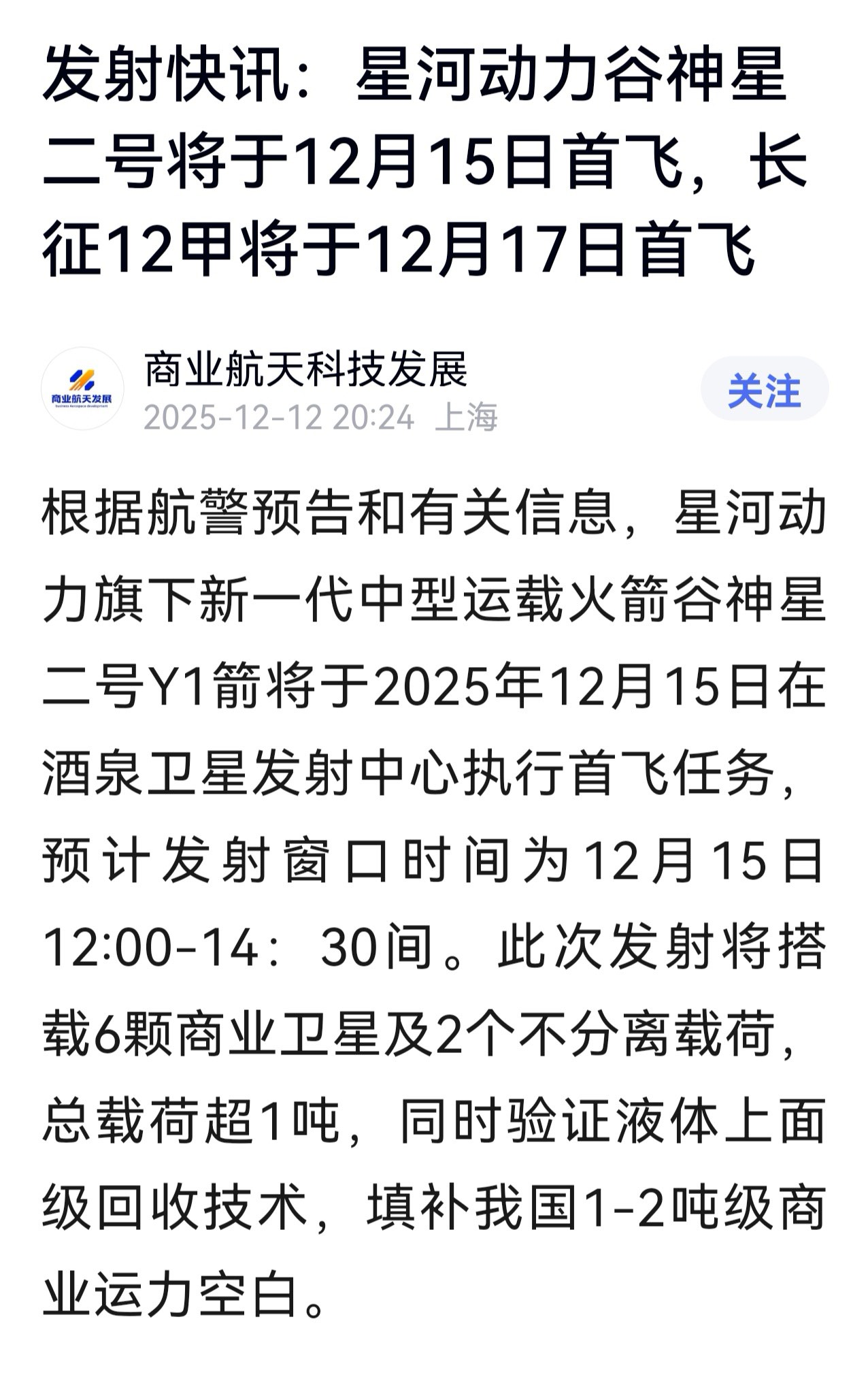 $科强股份(SZ920665)$ $天力复合(SZ920576)$ 长征12号甲12月17日酒泉发射中心升空,长征系列背靠航天院真正具有技术含量的商业航天,回收成功率大于80%。其余朱雀等全是民营企业。科强股份供应长征6号甲和8号甲材料,天力复合新高估值不掉,科强进入补涨龙
