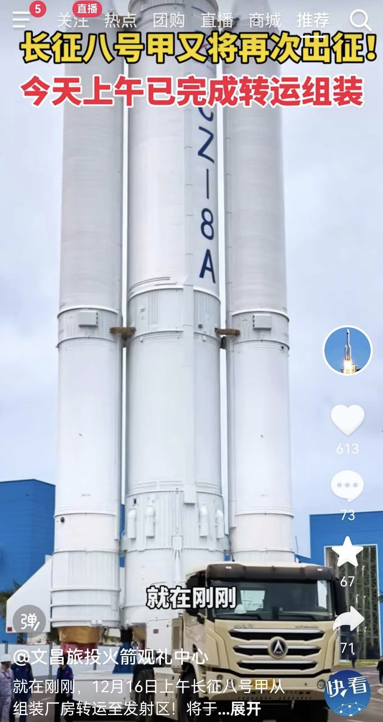 $科强股份(SZ920665)$ $天力复合(SZ920576)$ 长征8号甲进入发射状态,商业航天反弹第一看龙头天力复合。不过按照供货资料来说科强对应供货长征6号甲和长征8号甲,似乎更正一点。不过北交还得跟随主板。5成天力复合,2成科强股份,看反弹