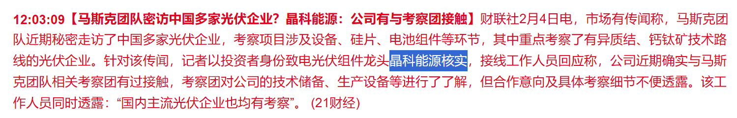马斯克团队造访晶科,具体细节不便透露,科强作为晶科供应商能否沾点光?