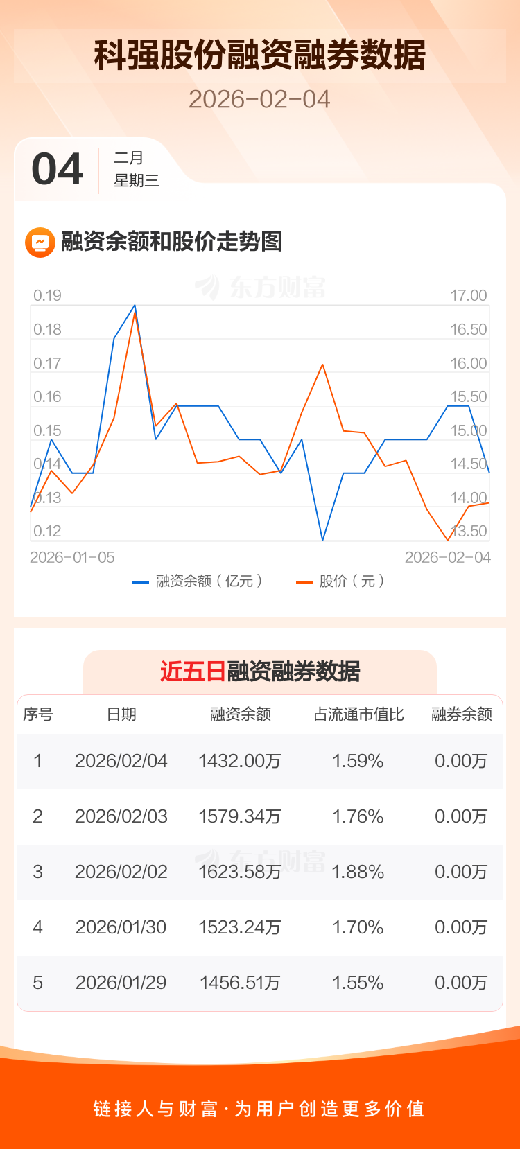 交易所最新数据显示,科强股份于2026年2月4日获融资买入202.98万元,融资偿还350.32万元,当日融资净偿还147.34万元。目前,该股融资余额1432.00万,占流通市值比例为1.59%。
