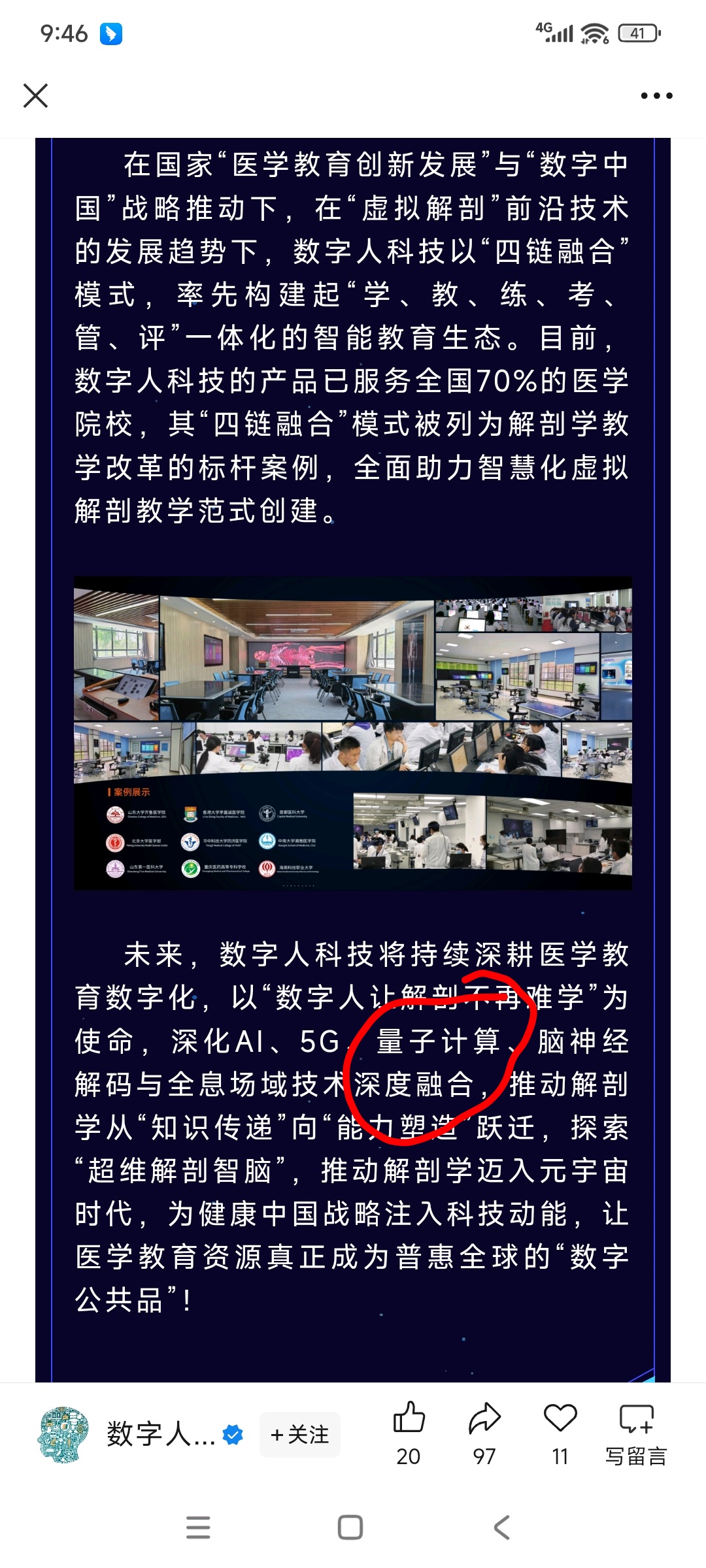 $数字人(SZ920670)$ $富士达(SZ920640)$ $科大国创(SZ300520)$ 将持续深耕医学教育数字化,以“数字人让解剖不再难学”为使命,深化AI、5G、量子计算、脑神经解码与全息场域技术深度融合,推动解剖学从“知识传递”向“能力塑造”跃迁,探索“超维解剖智脑”,推动解剖学迈入元宇宙时代,为健康中国战略注入科技动能,让医学教育资源真正成为普惠全球的“数字公共品”!
