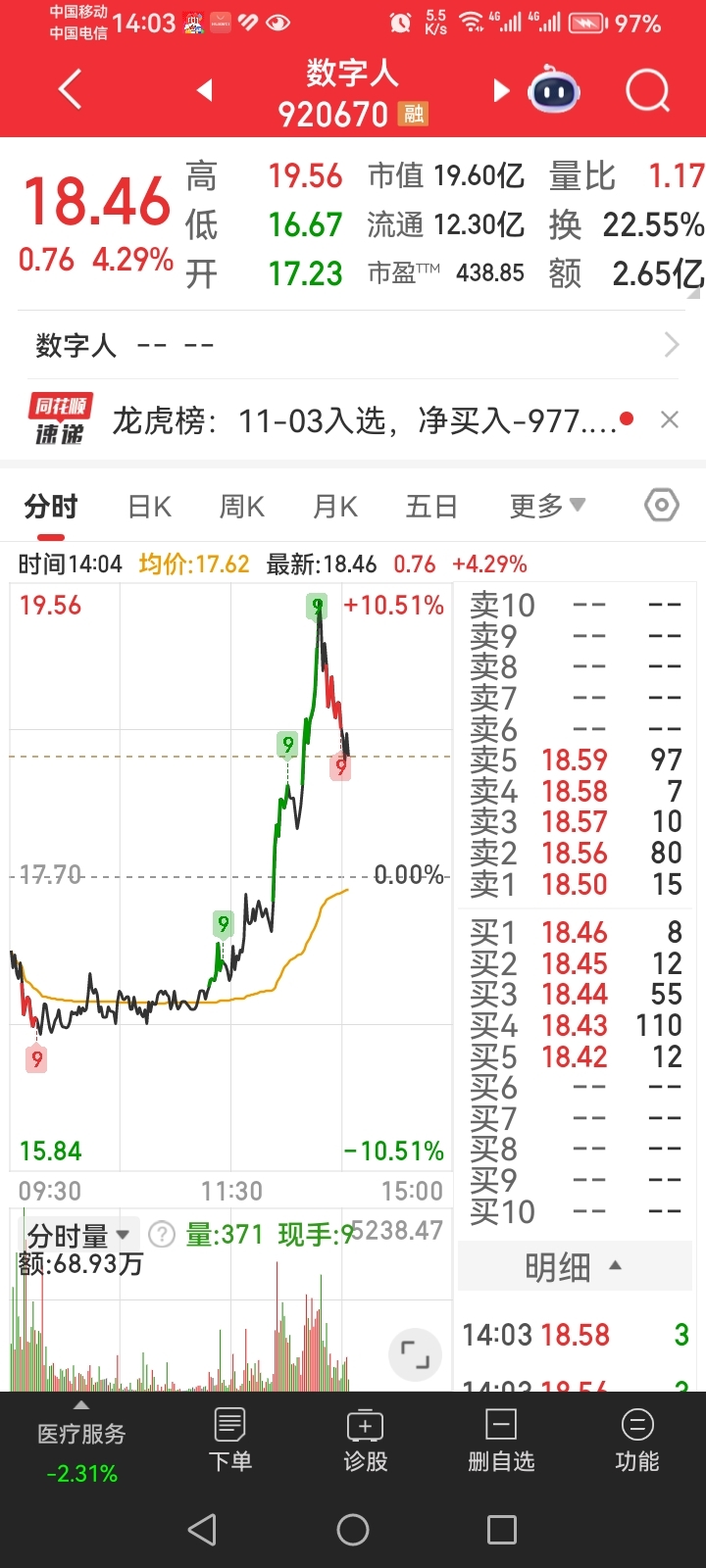 暴利回调3天,今天上午继续洗盘,下午拉升19.56试盘压力,回落18.47(29