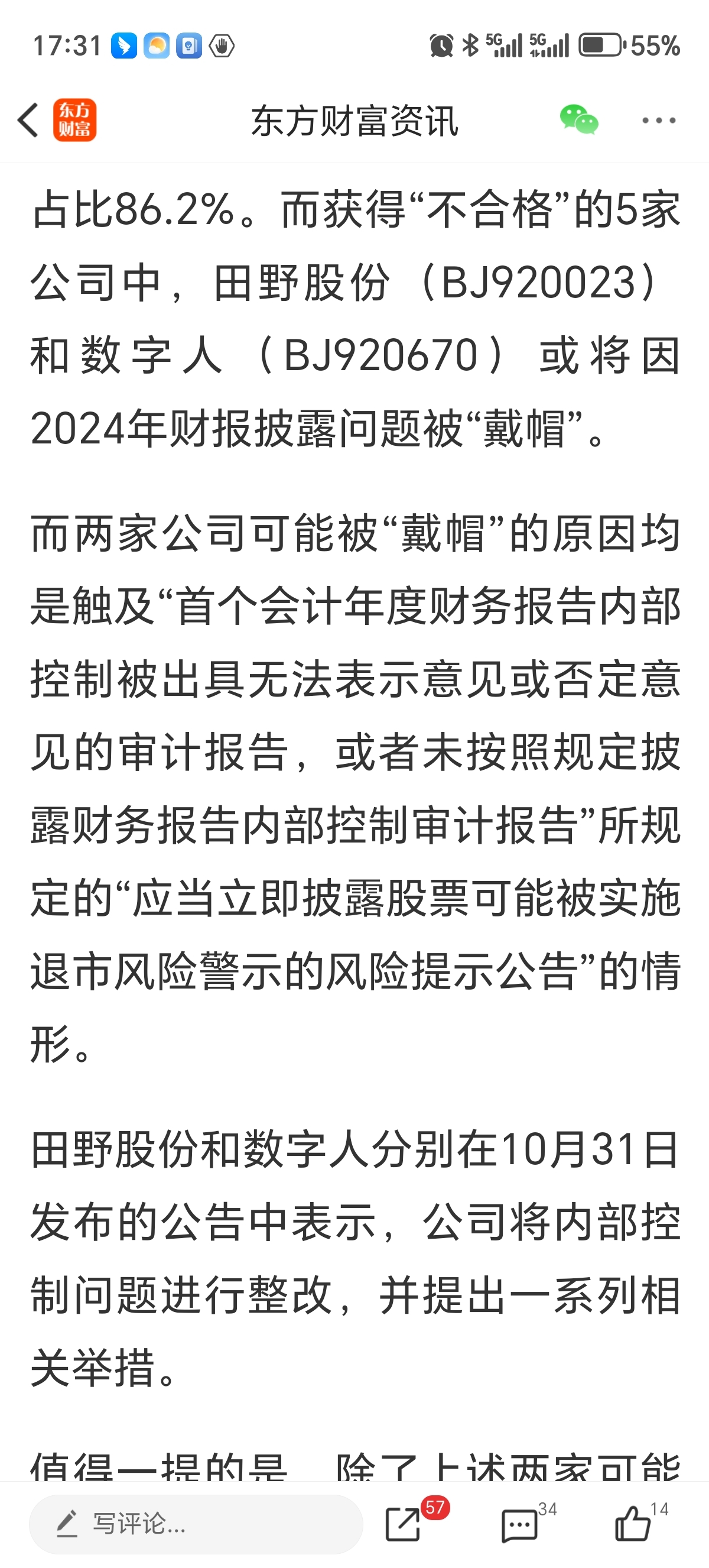 $数字人(SZ920670)$ 我去原来有可能被ST的