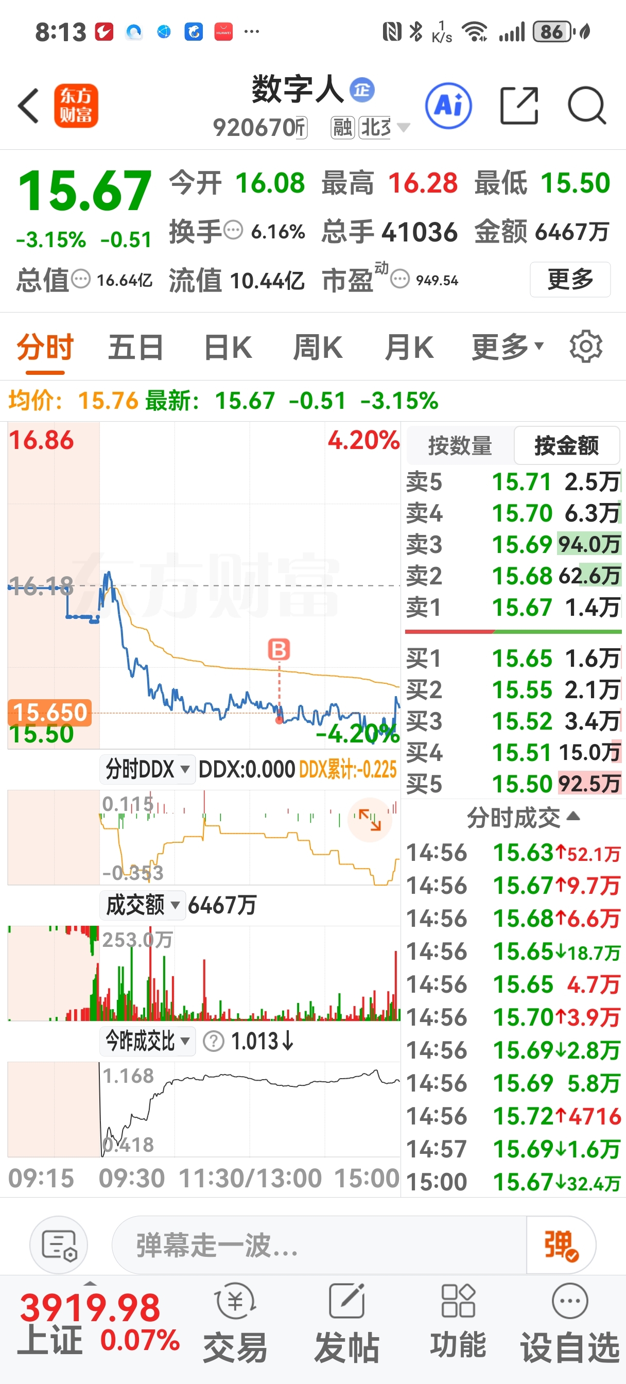 $数字人(SZ920670)$ 今天再跌,继续加仓,做到跟买基金一样