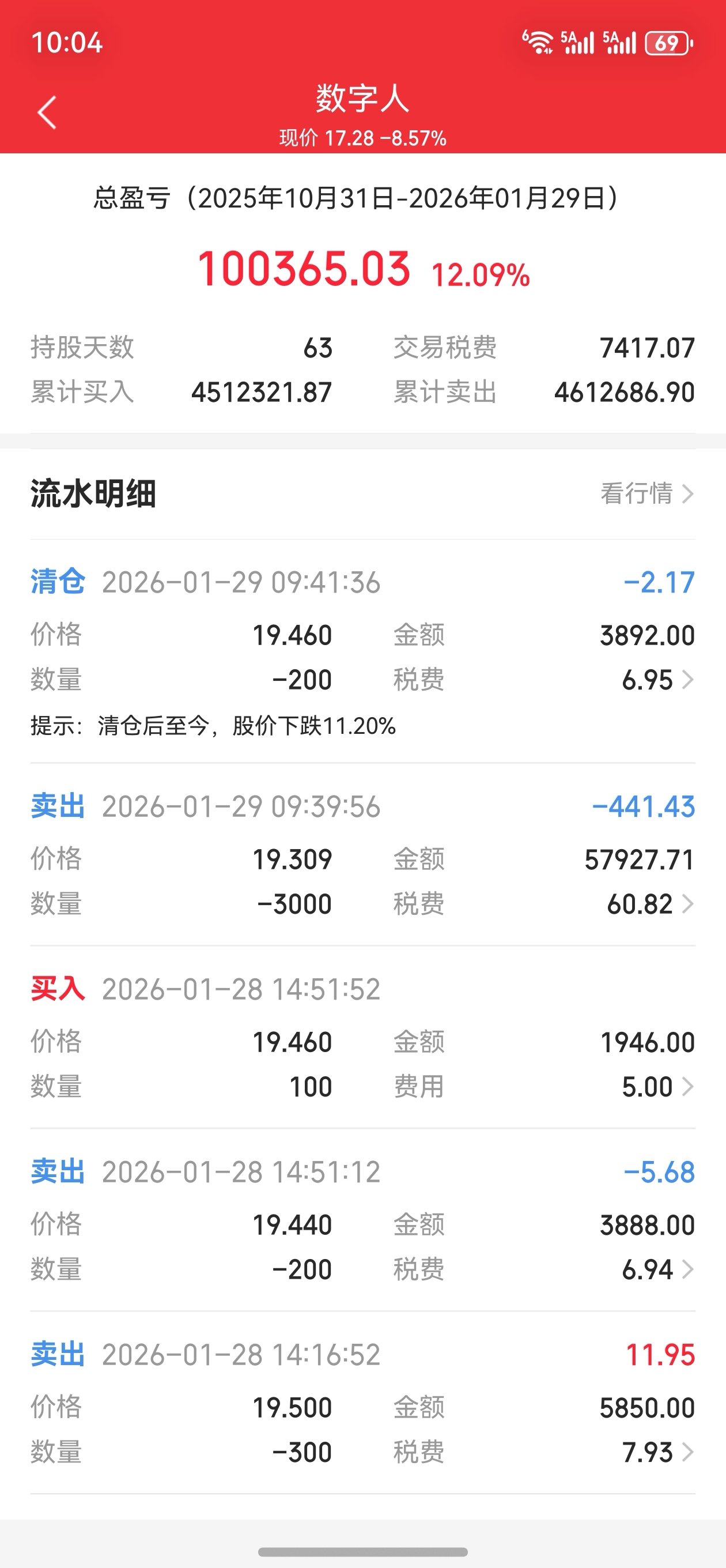 1月29号清仓了,唯一可惜的是,没有在高位全部抛掉!也算贪心!我走了,祝大家长红