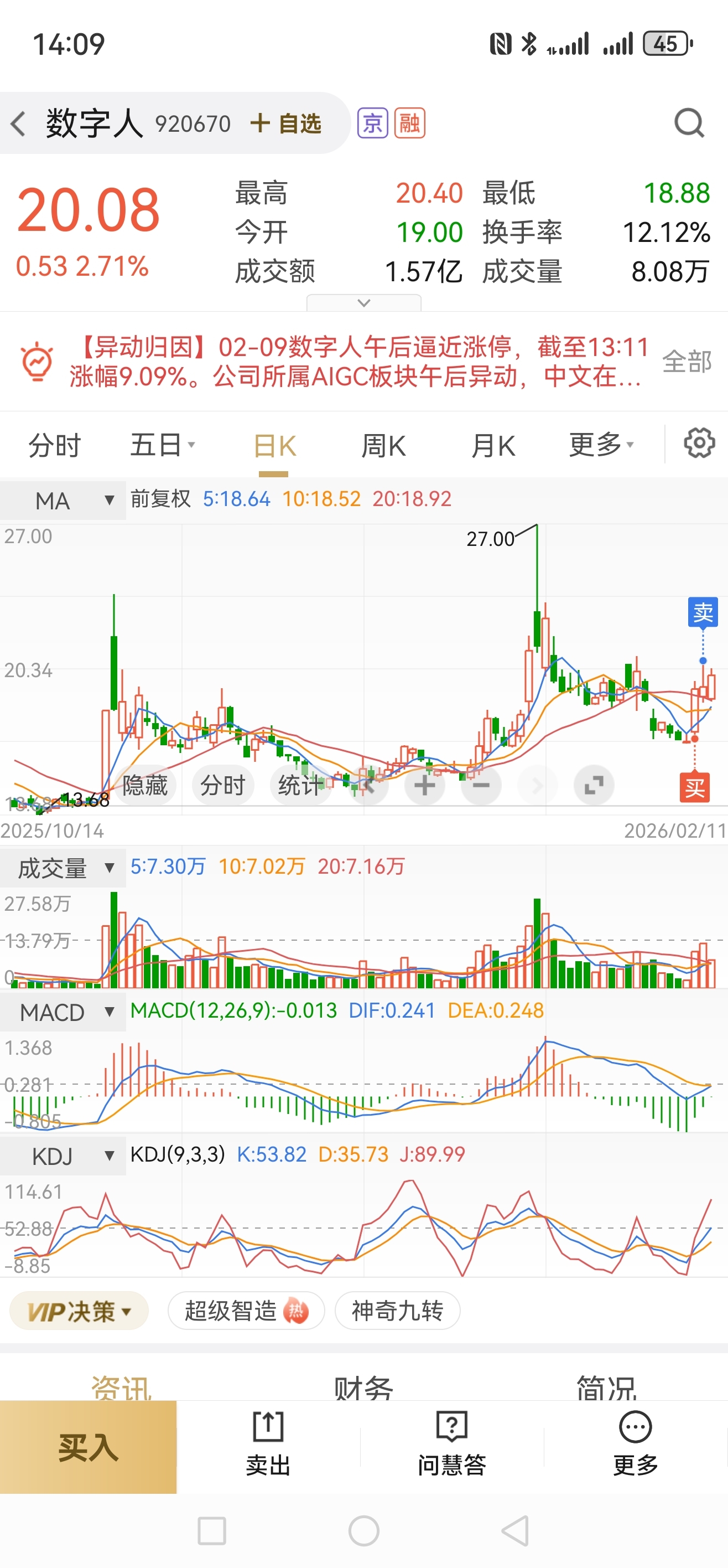 $数字人(SZ920670)$ 我错了,昨天不改抛弃你的,打脸了