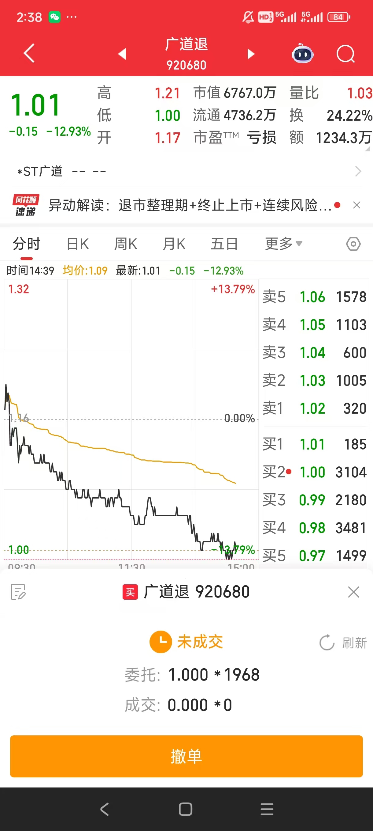 $广道退(SZ920680)$ 我裂开了,我就买了1968股,如果是1968手多好,这1968是我账户里的股息