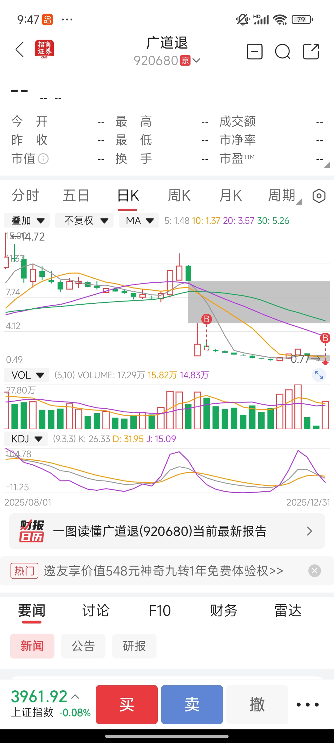 $广道退(SZ920680)$ 今日加仓加仓了,已经加满仓了