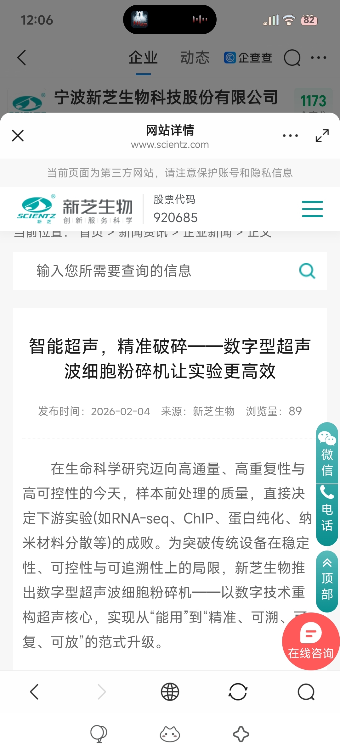 $新芝生物(SZ920685)$