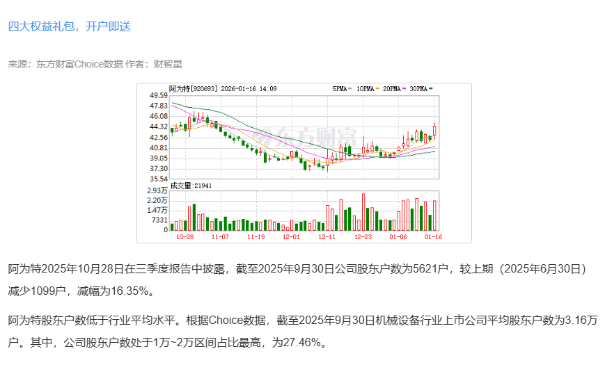 阿为特股东户数下降16.35%,户均持股31.52万元