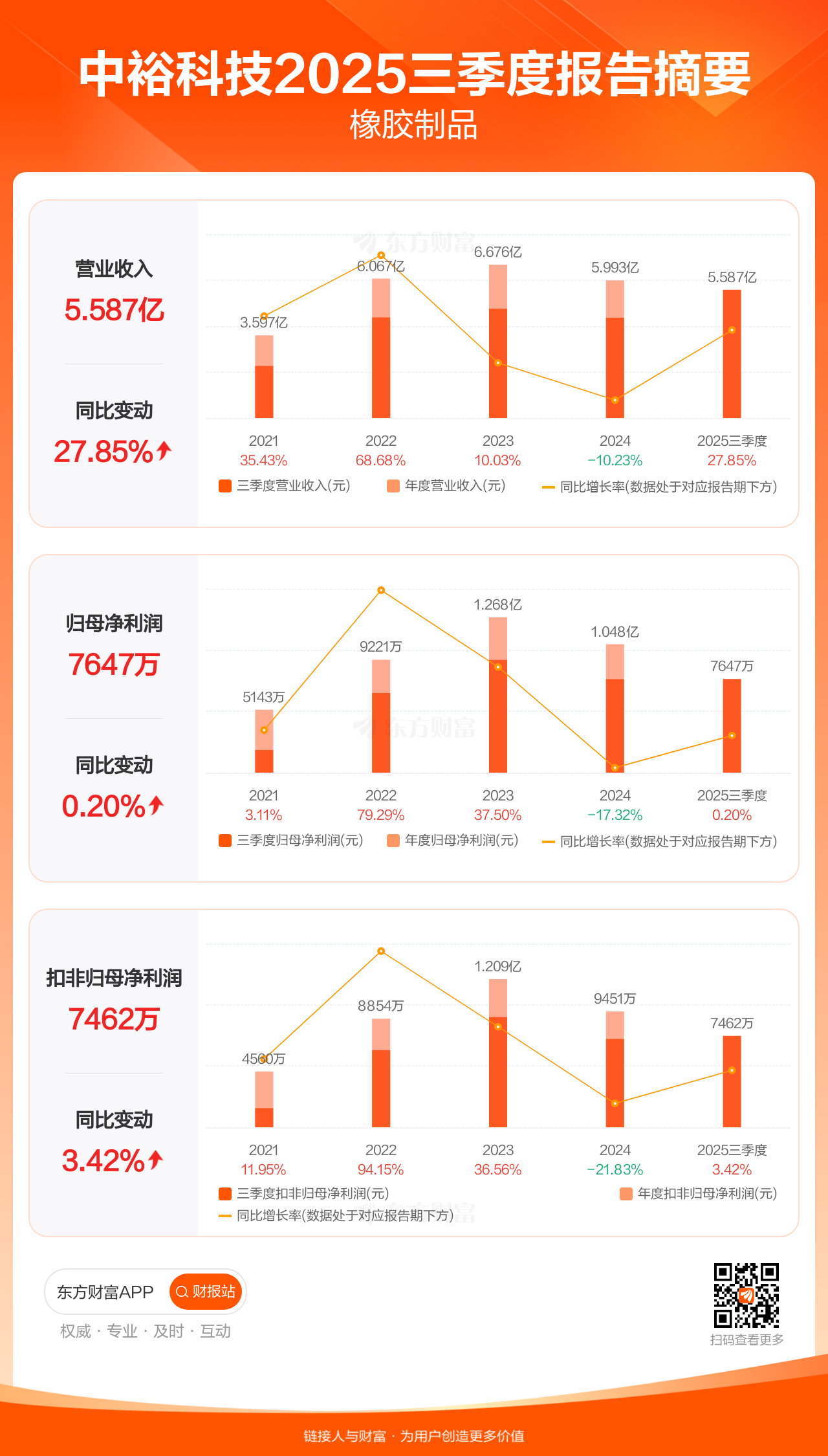 中裕科技10月28日发布2025年三季报显示,公司前三季实现营业收入5.59亿元,同比增长27.85%;归母净利润7646.70万元,同比增长0.20%;扣非归母净利润7461.76万元,同比增长3.42%。
