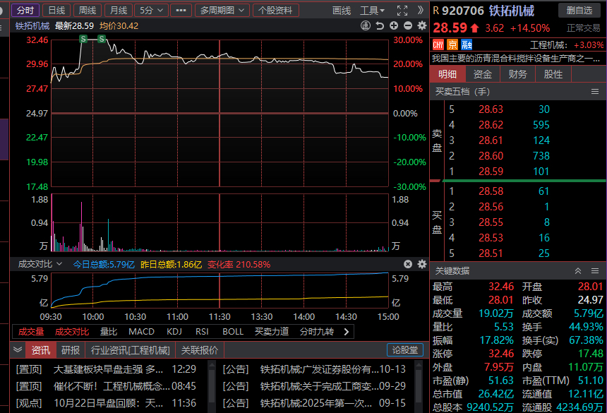 $铁拓机械(SZ920706)$ 三十厘米涨停必须跑啊,