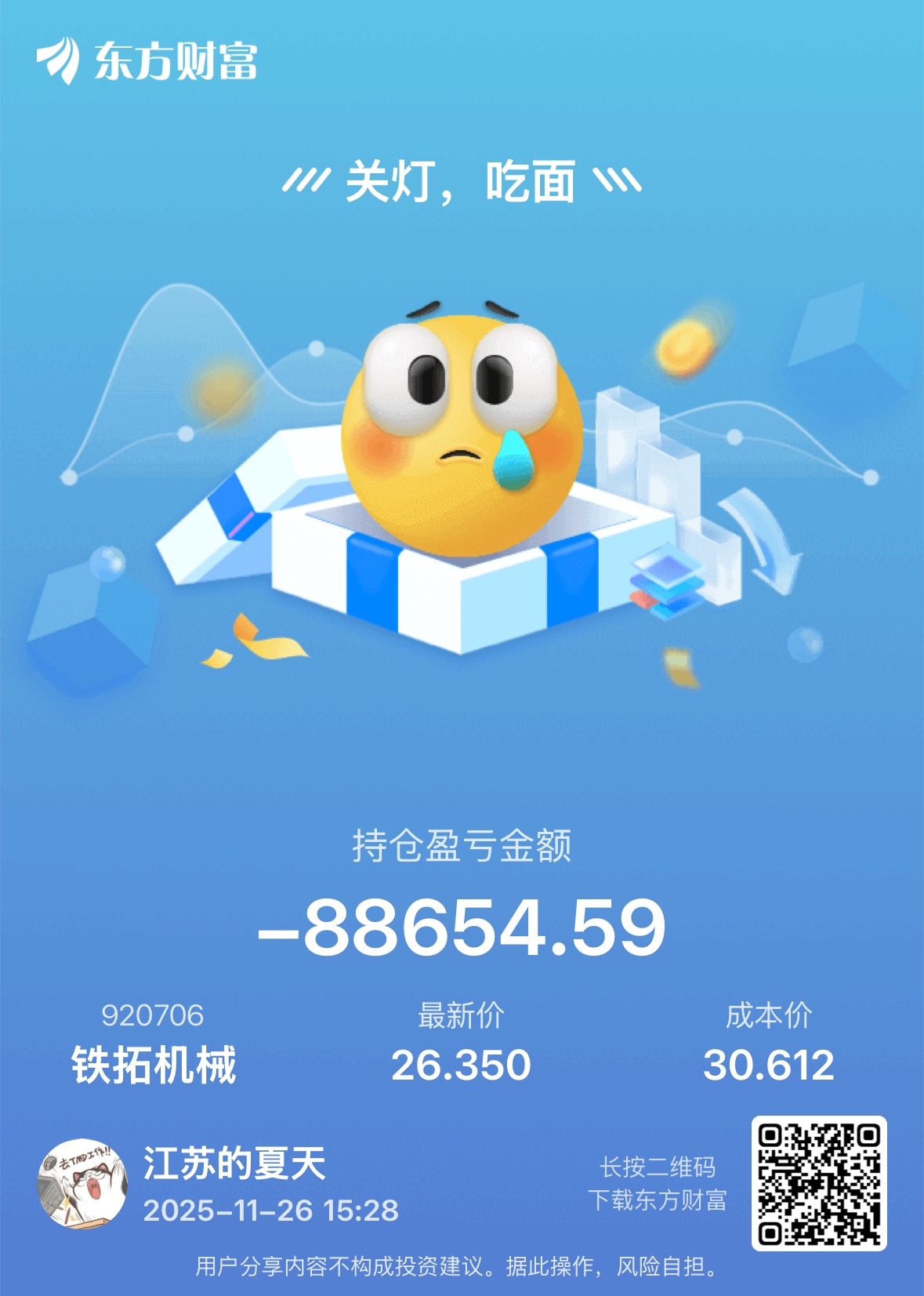 温馨提示: 1.根据《证券法》规定,禁止编造、传播虚假信息或者误导性信息,扰乱证券市场;2.用户在本社区发表的所有资料、言论等仅代表个人观点,与本网站立场无关,不对您构成任何投资建议。用户应基于自己的独立判断,自行决定证券投资并承担相应风险。《东方财富社区管理规定》