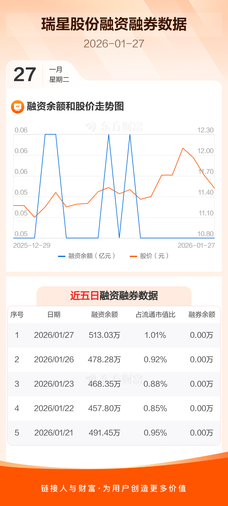 瑞星股份:融资净买入34.75万元,融资余额513.03万元