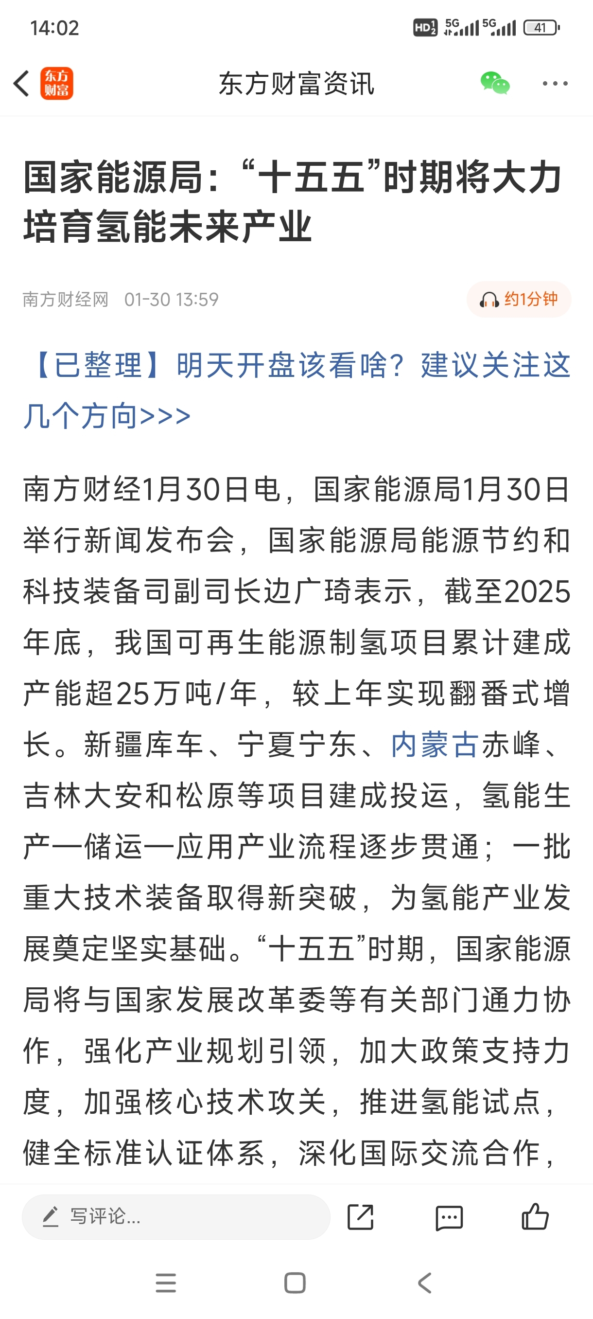 $瑞星股份(SZ920717)$ 第一大助功,天然气大涨12个多点,第二大助功,国家能源局1月30日举行新闻发布会,“十五五”时期,国家能源局将与国家发展改革委等有关部门通力协作,强化产业规划引领,加大政策支持力度,加强核心技术攻关,推进氢能试点,健全标准认证体系,深化国际交流合作,大力培育氢能未来产业,为加快建设新型能源体系、建设能源强国做出积极贡献。附件瑞星相关证书等。