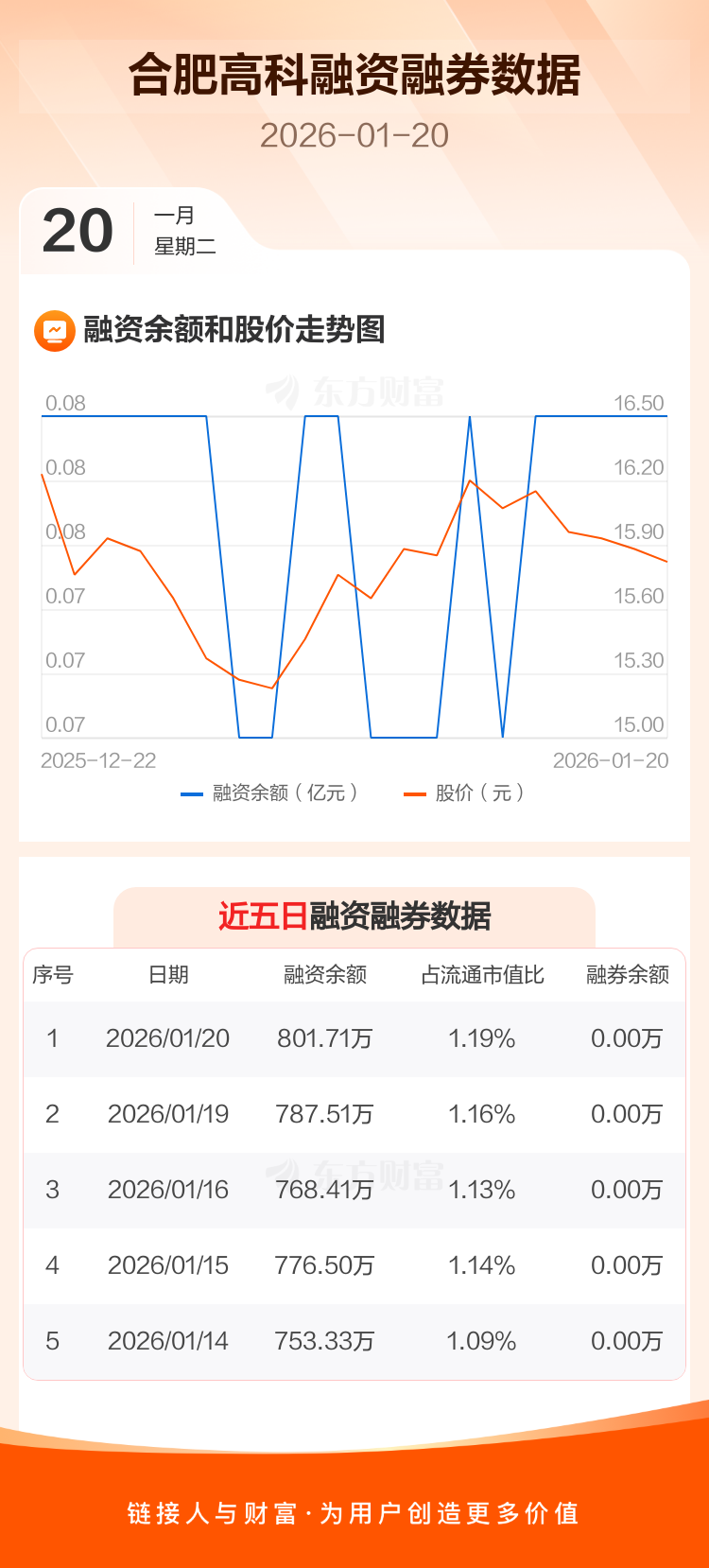 交易所最新数据显示,合肥高科于2026年1月20日获融资买入61.88万元,融资偿还47.68万元,当日融资净买入14.2万元。目前,该股融资余额801.71万,占流通市值比例为1.19%。