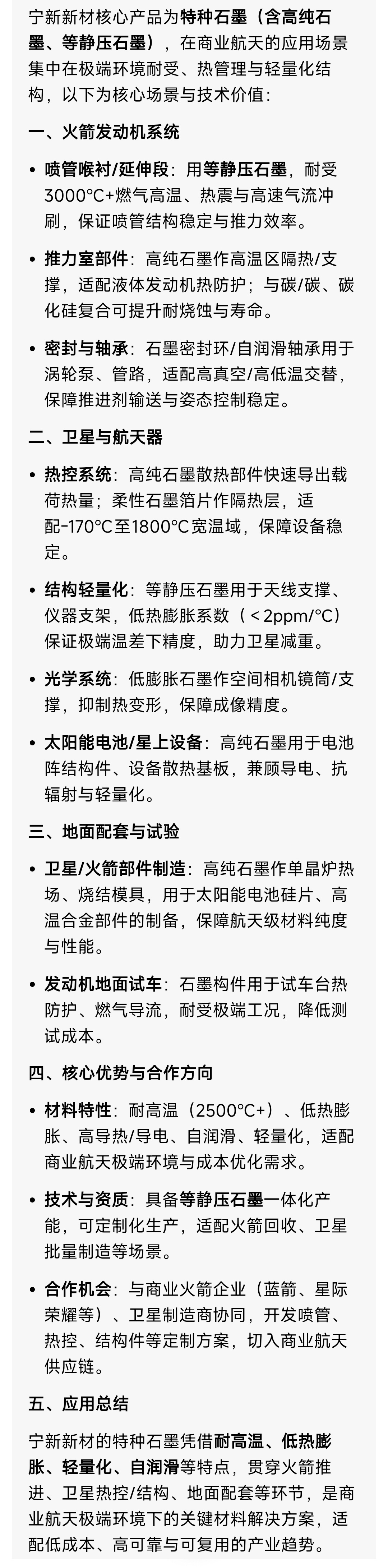 商业航天需要用到高纯石墨,这对宁新新材是一个很好的机会。
