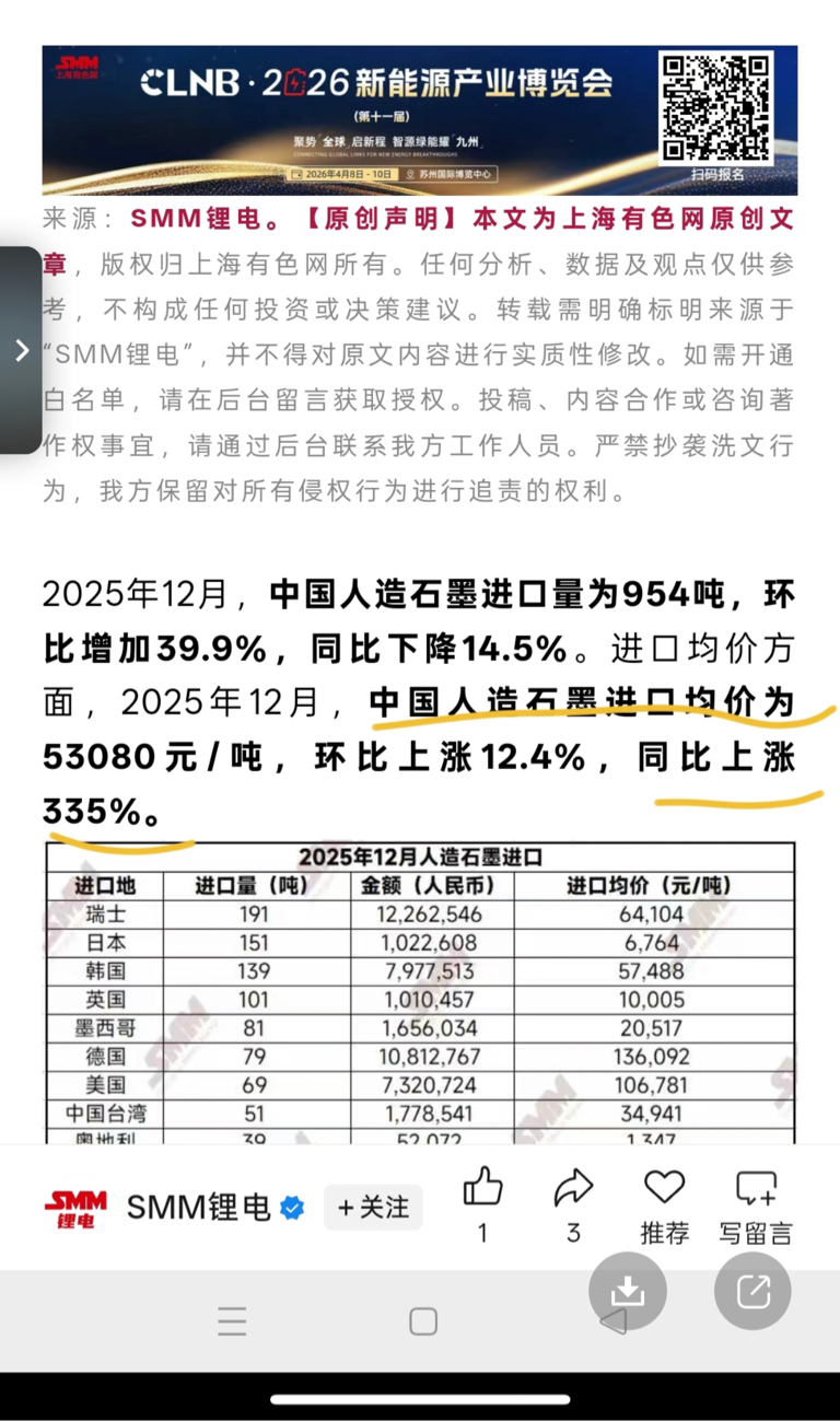 $宁新新材(SZ920719)$ $北证50(SZ899050)$ $上证指数(SH000001)$ 石墨2026年涨价的一年,资源股静待爆发,业绩暴涨,这是长久的预期目标