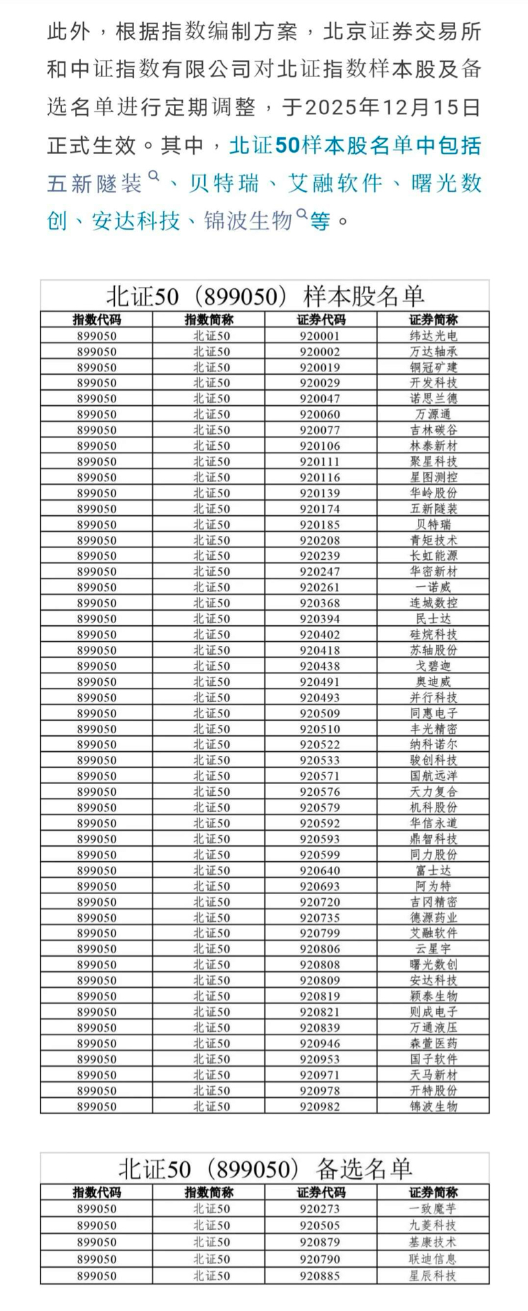 $吉冈精密(SZ920720)$ 北证50指数最新名单,推出ETF绝对利好名单内股票!珍惜低位购买机会
