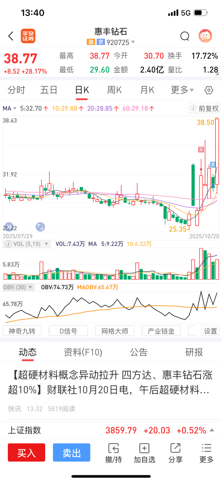 $惠丰钻石(SZ920725)$ 呵呵,12000股
