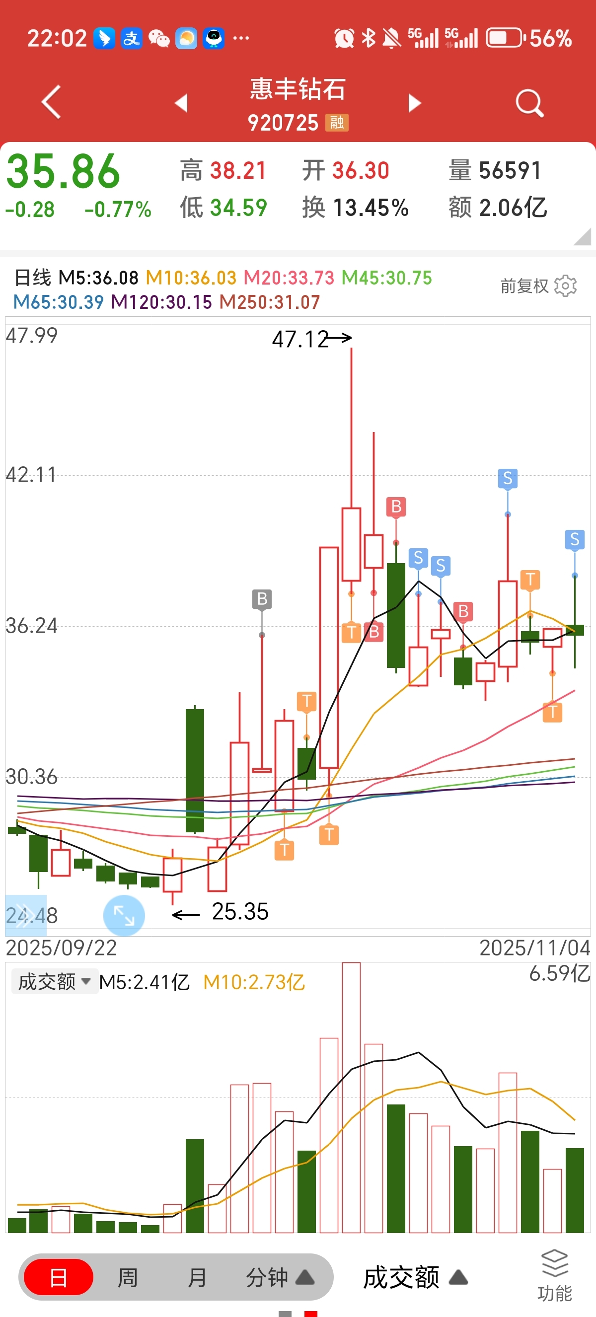 $惠丰钻石(SZ920725)$ 今天出完了,不知道是对是错,高点没出,少挣一半