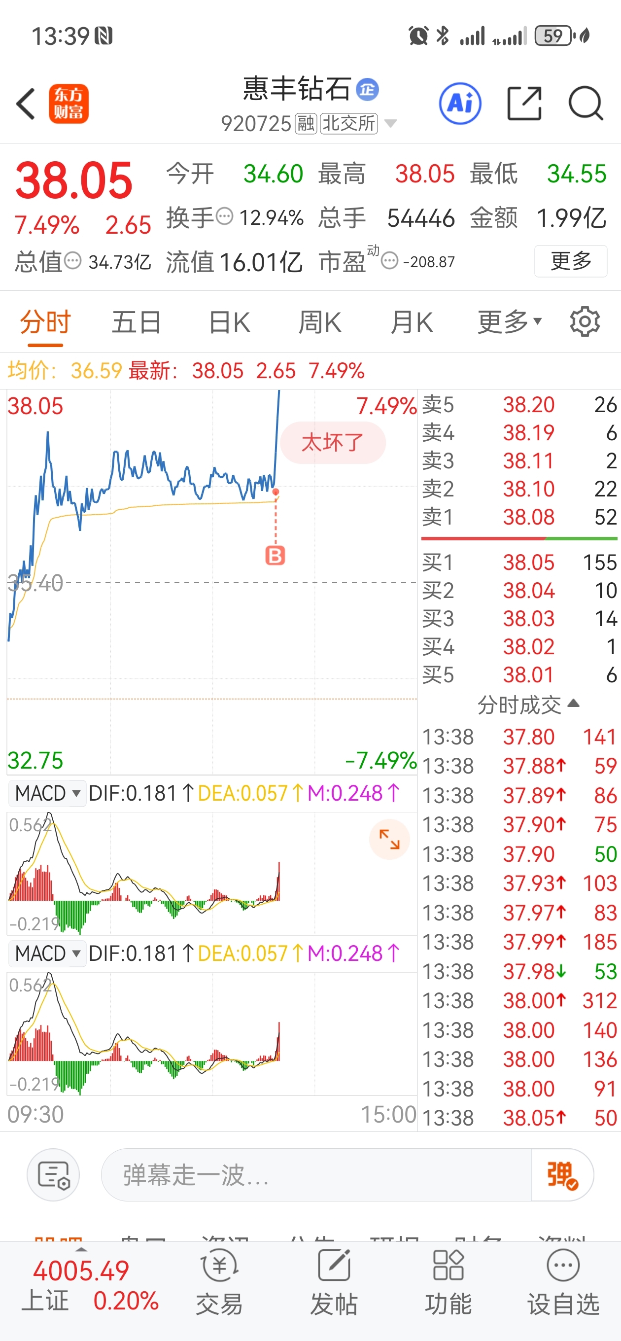 $惠丰钻石(SZ920725)$ 主力这么给力嘛