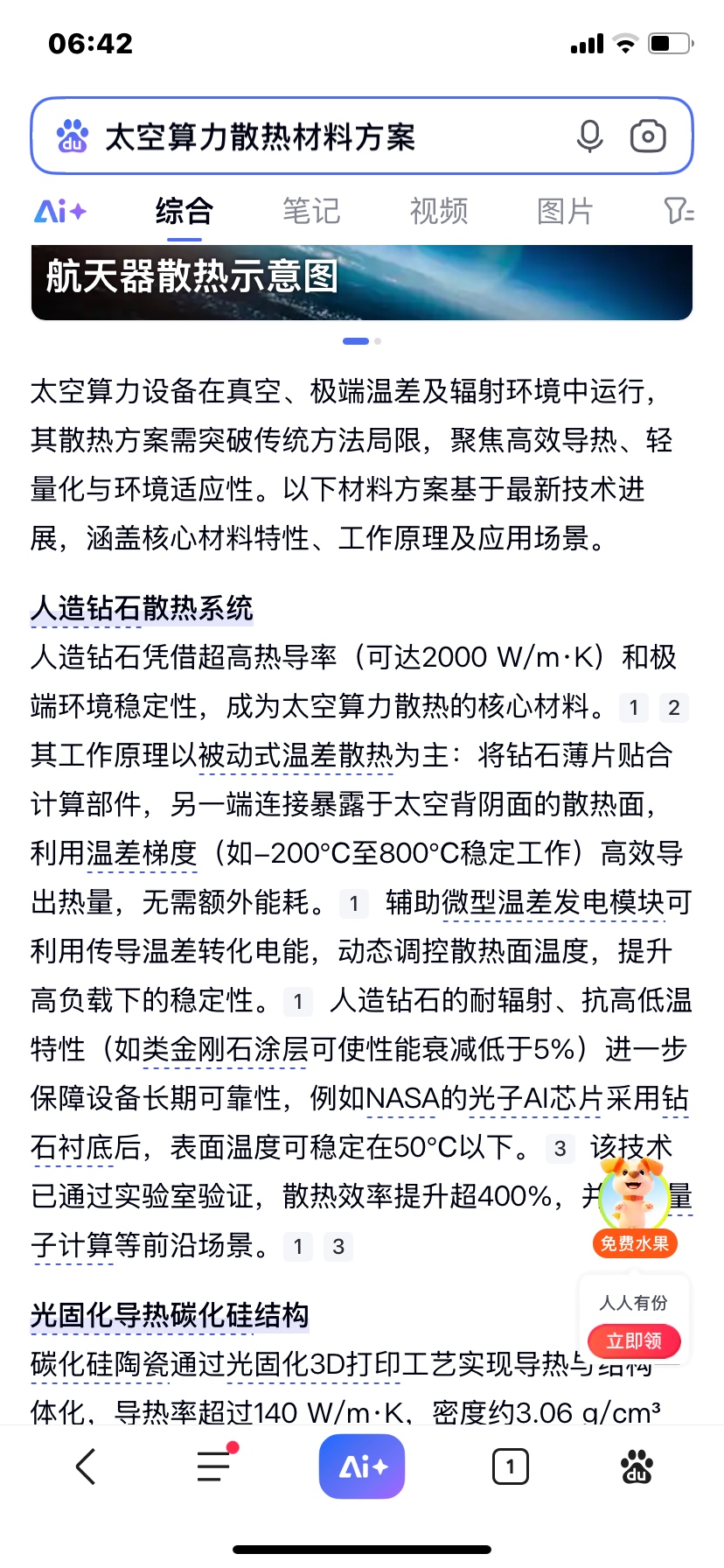 $惠丰钻石(SZ920725)$ 人造钻石是太空算力设备的极品散热材料!