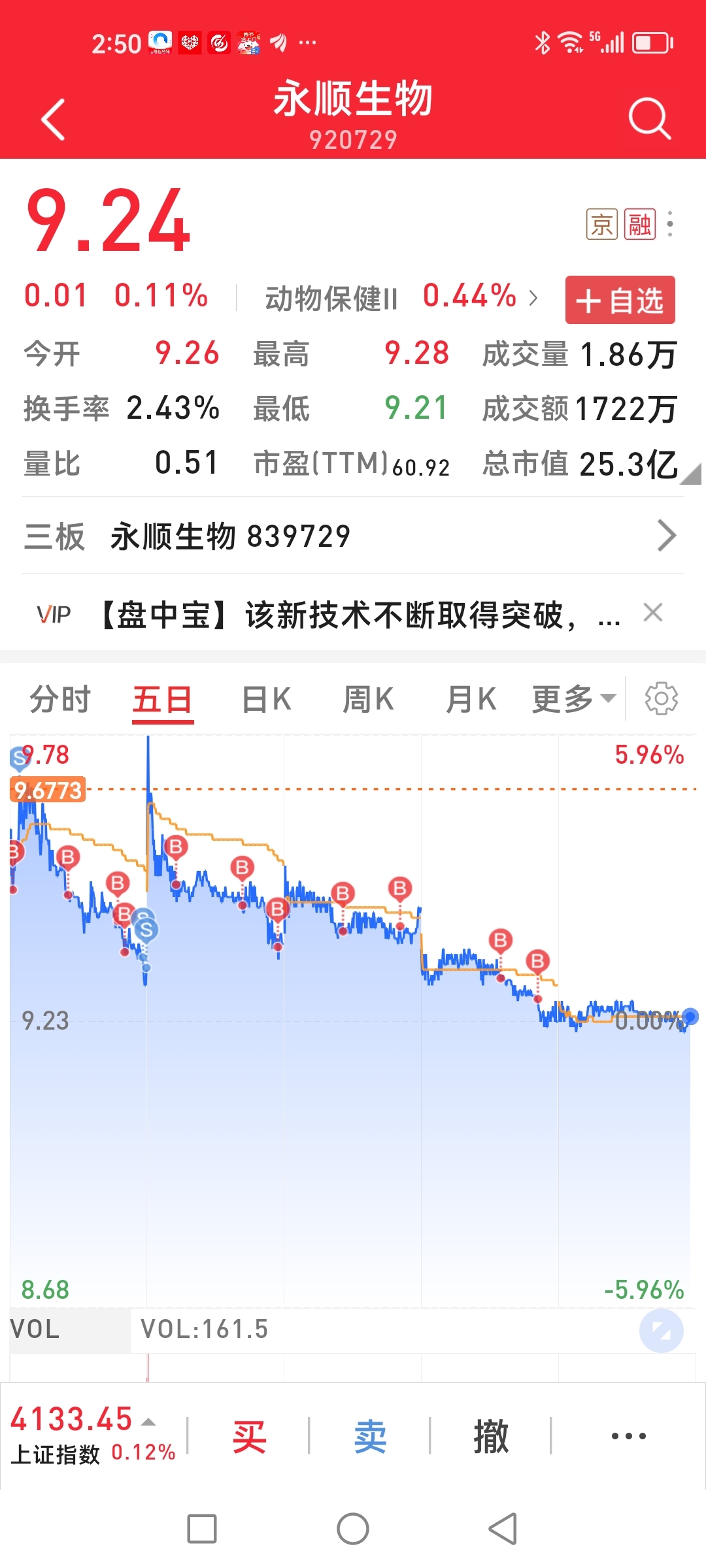 $永顺生物(SZ920729)$ 一包香烟一杯茶。一只破股看一天。
