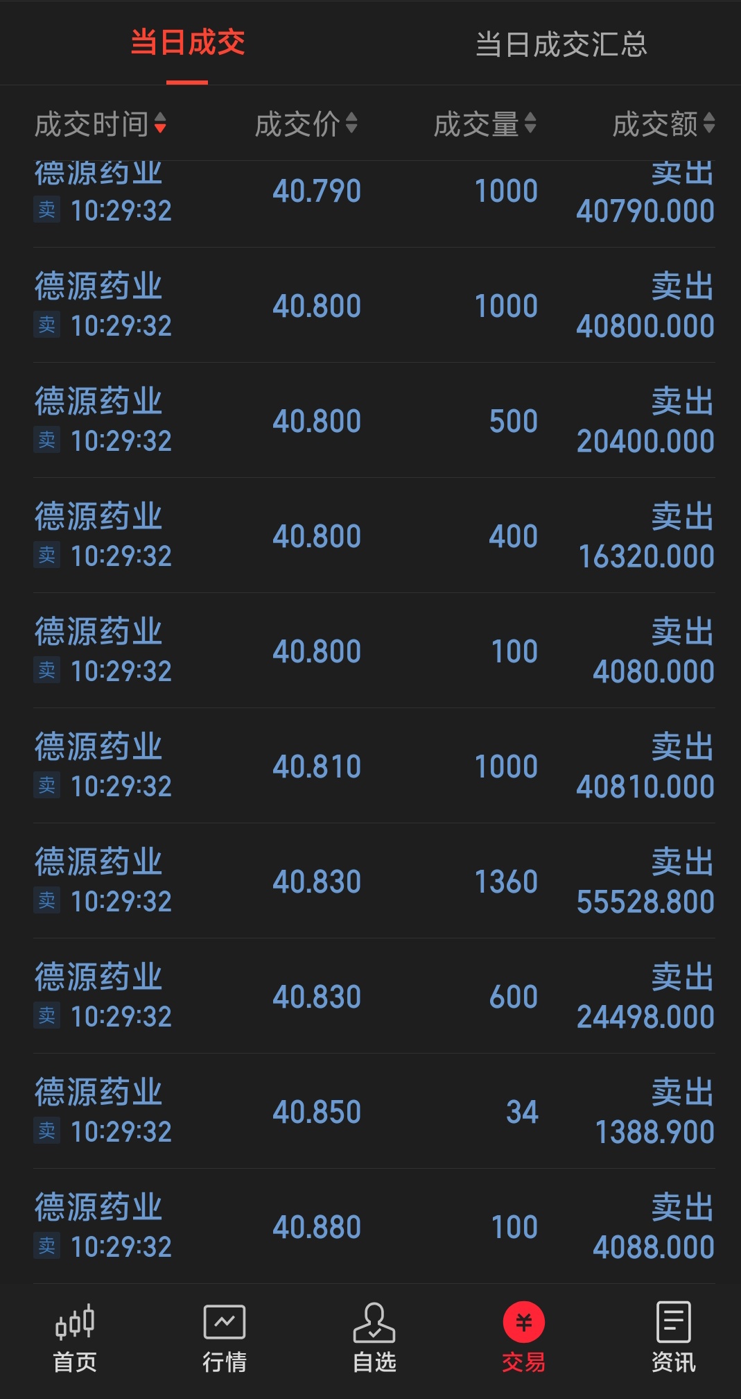 $德源药业(SZ920735)$ 上周五创新药大涨,进了德元药业,其实原本并不准备买它的。因为诺斯兰德和三元基因成交量太低了,不好进货也不好出货,哪怕只卖买100万都费劲。所以最后选了一个成交量稍微高一点的德源药业,结果今天直接闷杀。还好买的不多就买了200多手,大概亏了1%左右,一万多块钱,直接止损了。卖出后又下跌了-3%。看来以后有减持的股,还是要慎重购买。