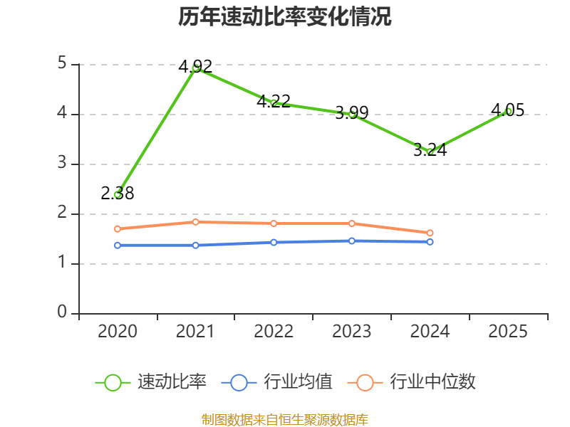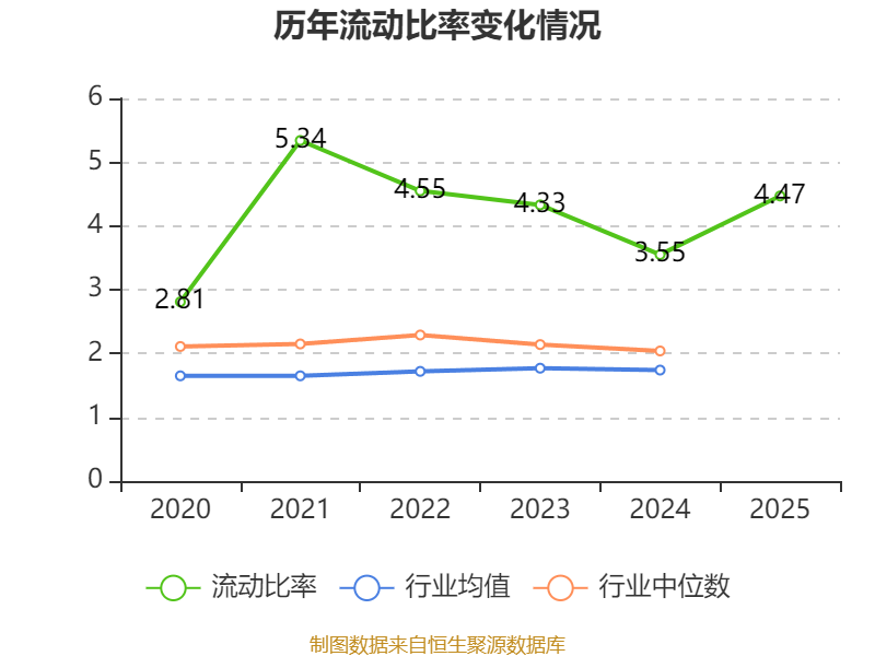 2025年,公司流动比率为4.47,速动比率为4.05。