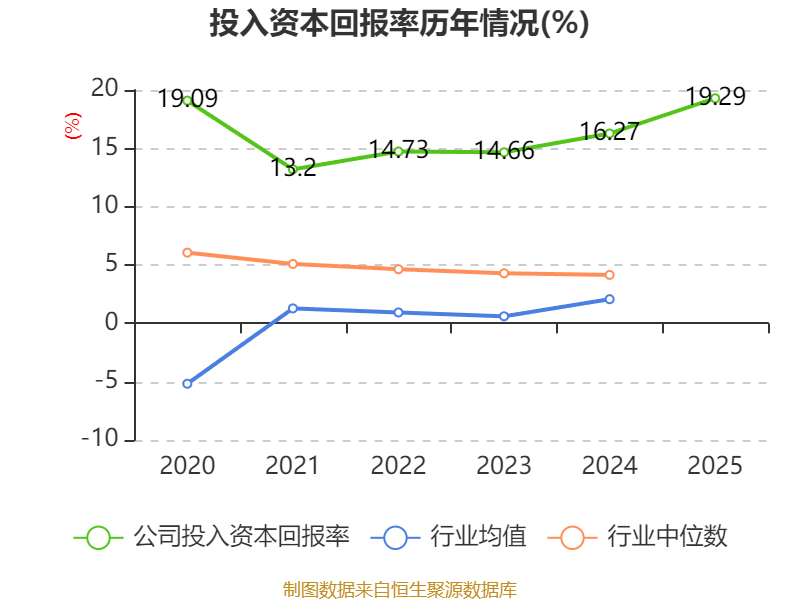 数据显示,2025年公司加权平均净资产收益率为19.74%,较上年同期上升2.42个百分点。公司2025年投入资本回报率为19.29%,较上年同期上升3.02个百分点。
