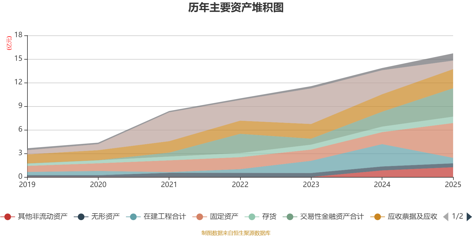 资产重大变化方面,截至2025年末,公司固定资产较上年末增加190.69%,占公司总资产比重上升17.19个百分点;在建工程合计较上年末减少75.56%,占公司总资产比重下降16.09个百分点;货币资金较上年末减少64.31%,占公司总资产比重下降15.15个百分点;交易性金融资产合计较上年末增加89.79%,占公司总资产比重上升9.23个百分点。
