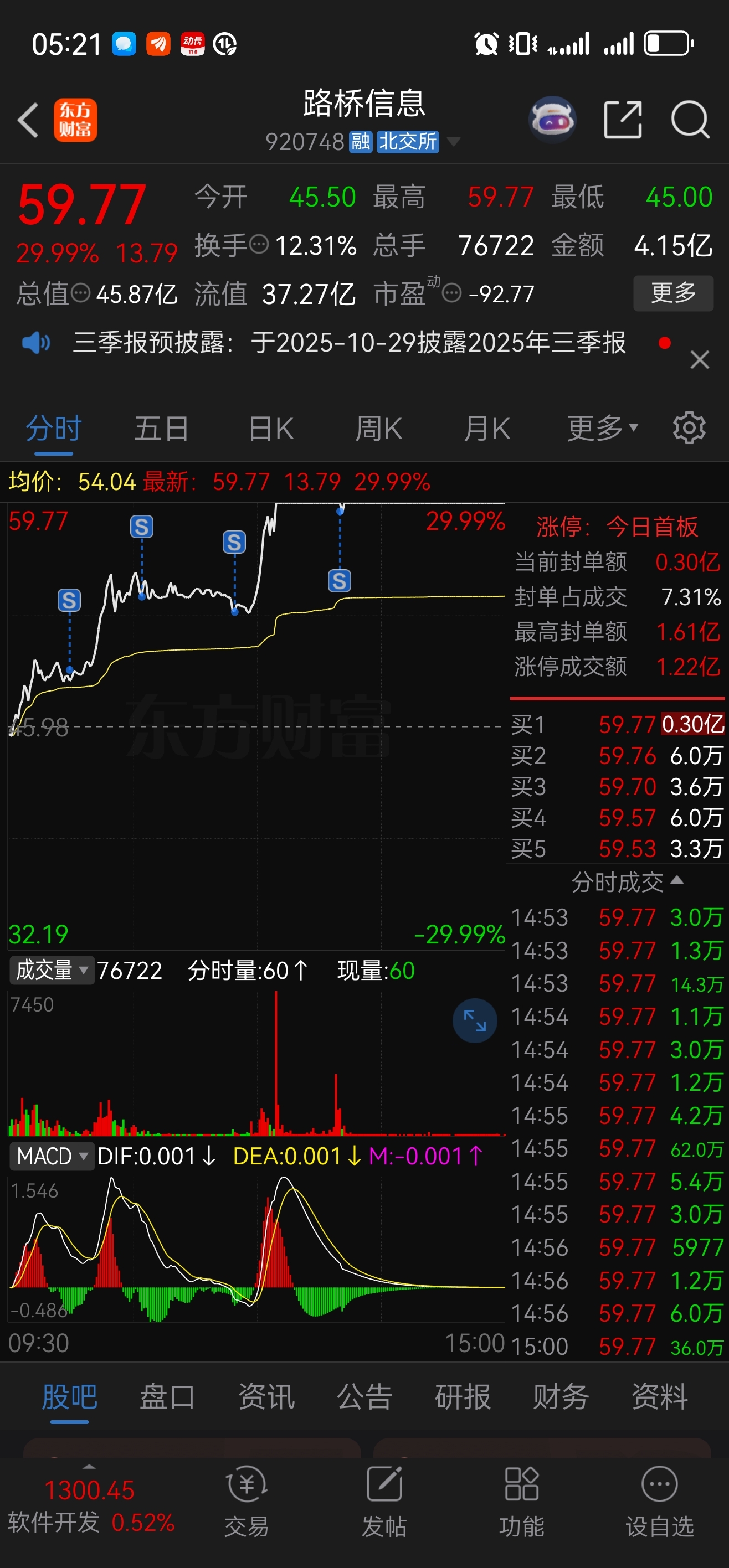 $路桥信息(SZ920748)$ 我反正全被洗出去了!